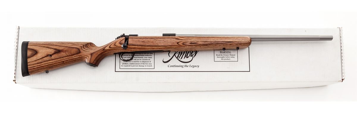 Kimber Model 8400 Sonora Bolt Action Rifle, #KW26545, .25-06 Rem. cal., 24'' fluted stainless steel barrel, matte blue receiver, brown laminate pistol-grip stock, Kimber recoil pad, and gun lock, in box with matching end label and owner's manual. Condition is excellent, remaining new and unfired, with very few light marks overall from handling. Retails @ $1,298.95. Est.: $800-$1,100. (Modern) (Field Time)