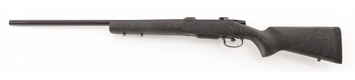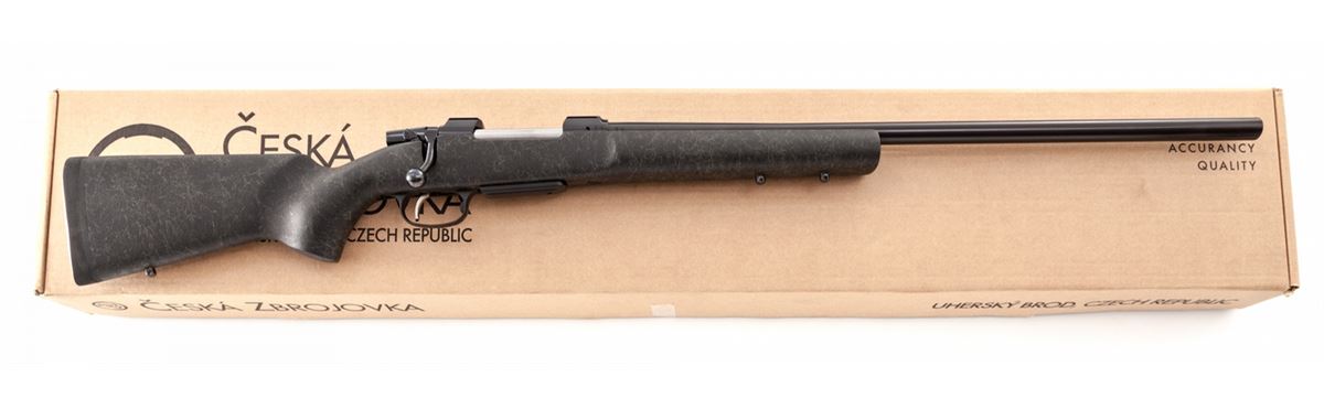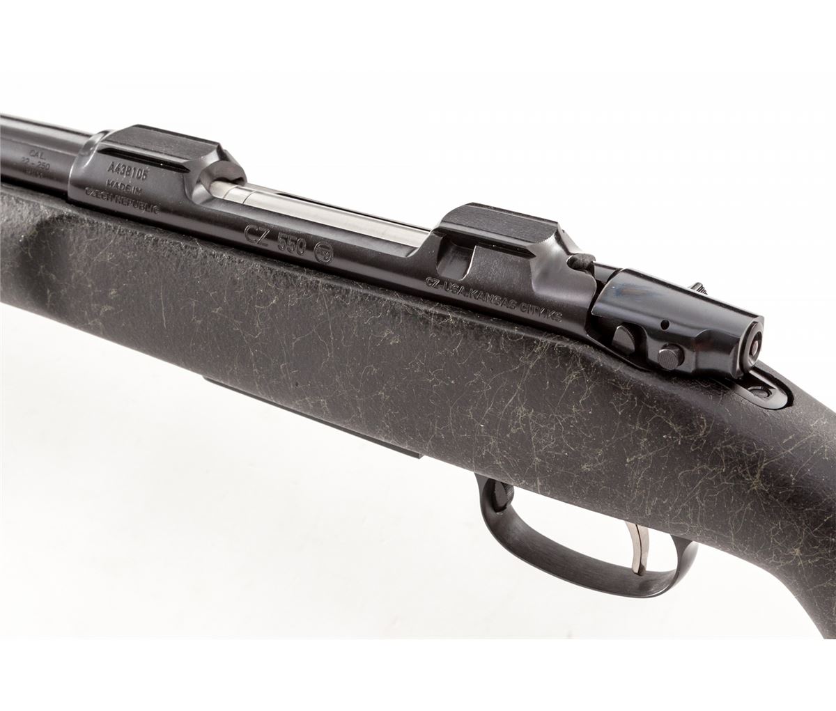 CZ Model 550 Varmint Bolt Action Rifle, #A438105, 22-250 Rem. cal., 25-5/8'' barrel, blue finish, synthetic black with gray accented pistol-grip stock, Decelerator recoil pad, with one (1) magazine, in box with matching end label. Condition is excellent, remaining new and unfired. Retails @ $1,025.95. Est.: $600-$800. (Modern) (Field Time)
