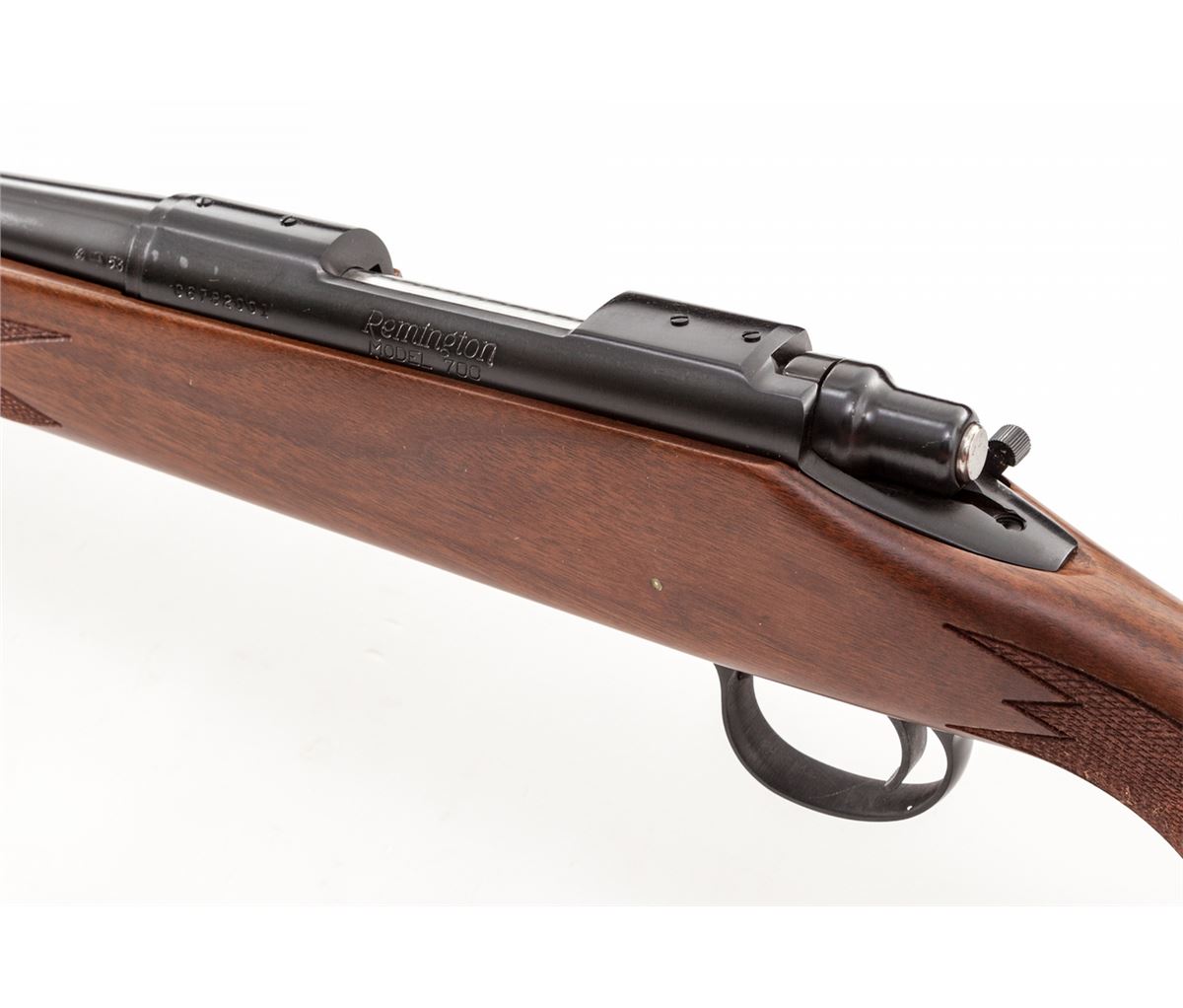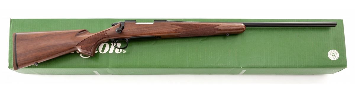 Remington Model 700 Classic Bolt Action Rifle, #C6782001, .222 Rem. cal., 24'' barrel, blue finish, checkered walnut stock, Remington hard rubber buttpad, in original box with matching end label and owner's manual. Mfg'd 1993. Condition is excellent, appearing near new. Box with tape residue. Est.: $600-$800. (Modern)
