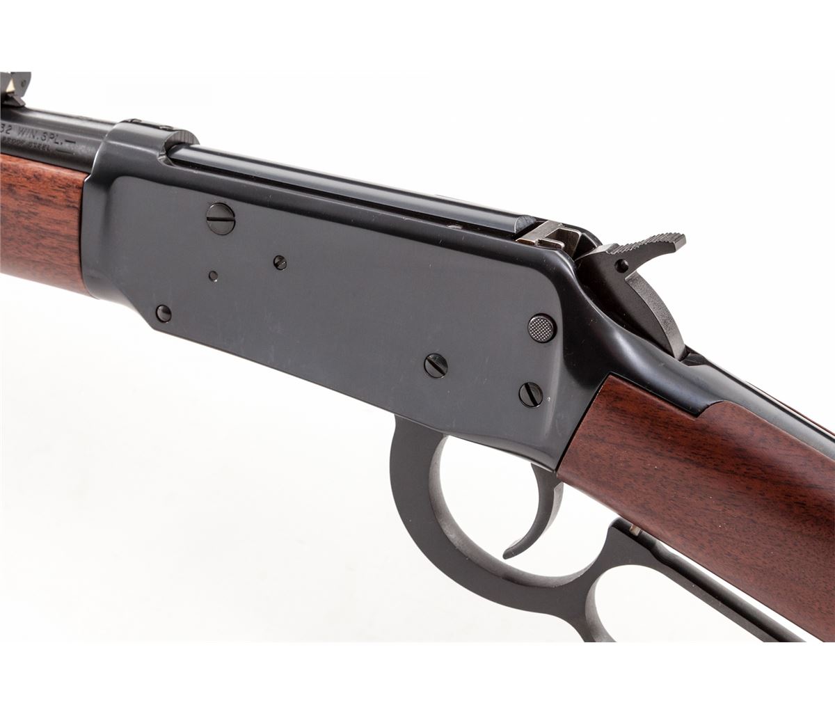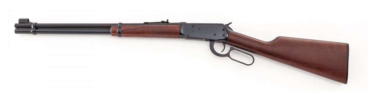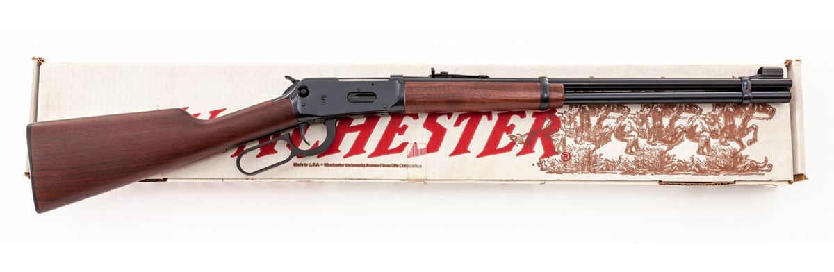 Winchester Model 94AE Lever Action Rifle, #6009828, .32 Win. Spl. cal., 20'' barrel, blue finish, smooth walnut stock and forend, Winchester hard rubber buttplate, crossbolt safety, adjustable semi-buckhorn rear sight, hooded front sight, in original box with matching end label and owner's manual. Condition is excellent, appearing as new. Box with some damage. Est.: $500-$650. (Modern)