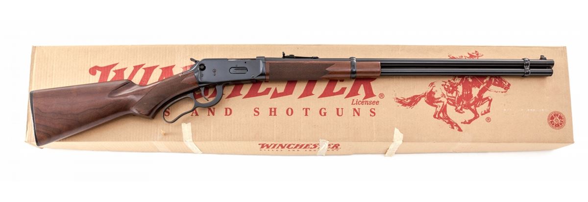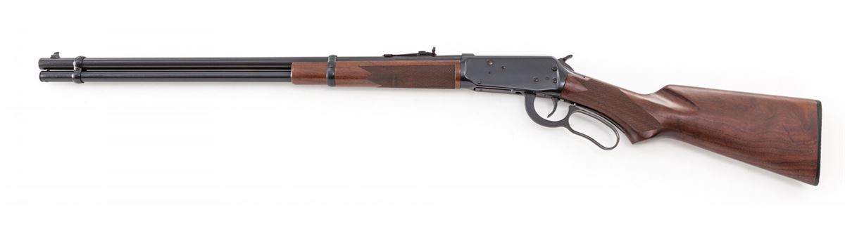 Winchester Model 94AE Lever Action Rifle, #6401422, .45 Colt cal., 24'' barrel, blue finish, checkered walnut stock, crossbolt safety. Condition is excellent, appearing as new, in its original box. Est.: $600-$800. (Modern)