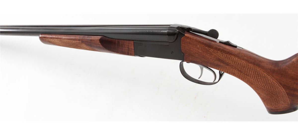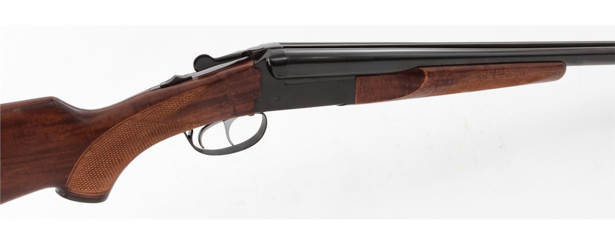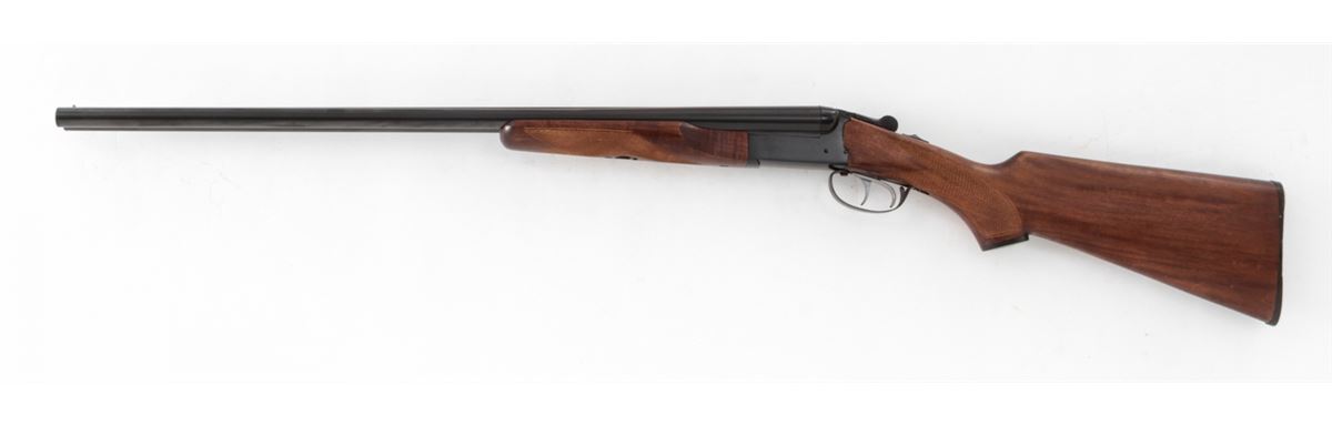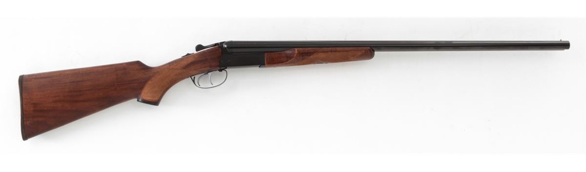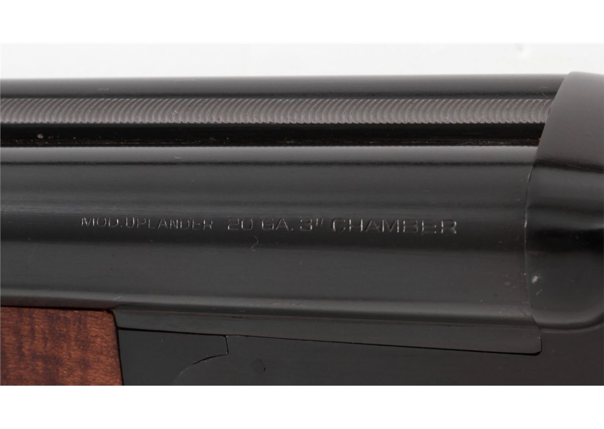 Brazilian Gaucha Side-by-Side Shotgun, marked ''Uplander'', #327325, 20 ga., 26'' barrels choked Skeet/Skeet, blue finish, South American checkered hardwood stock, with black plastic buttplate. Condition is excellent showing little use. Est.: $250-$400. (Modern)