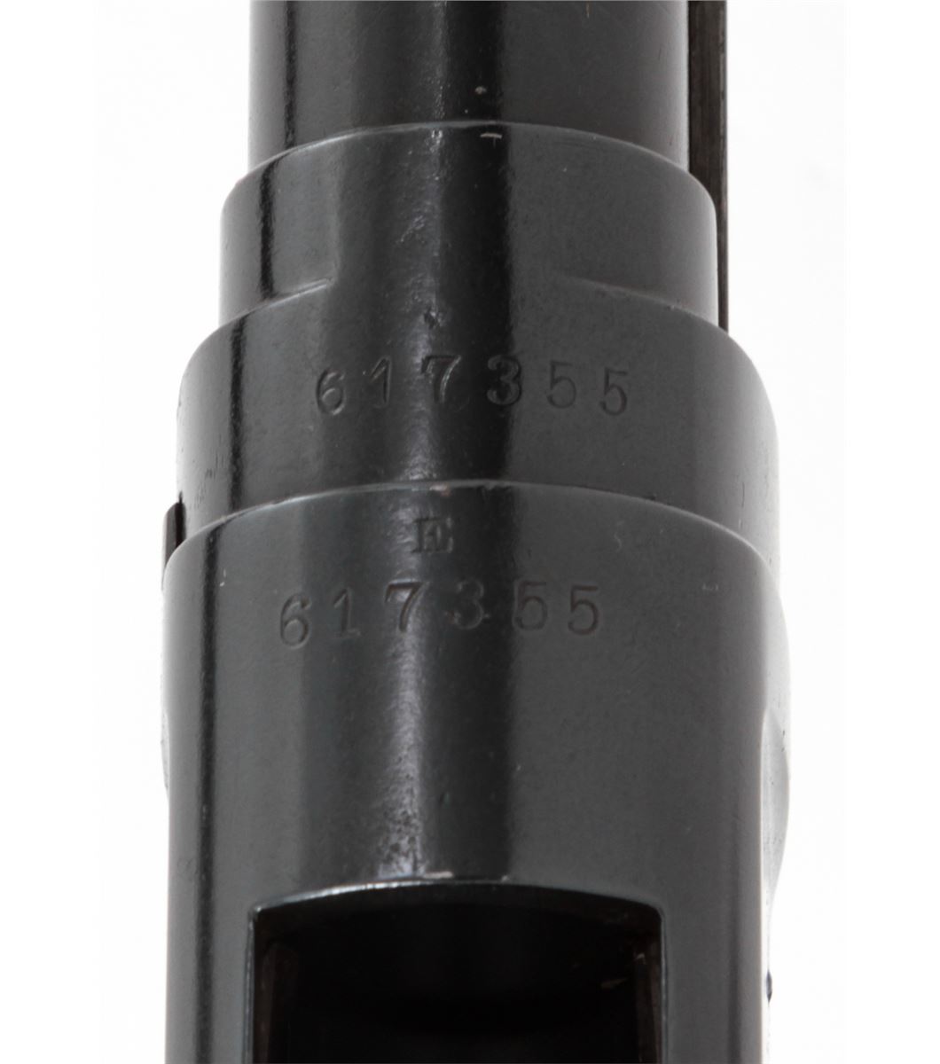 Winchester Model 1897 Pump Action Shotgun, #617355, 12 ga., barrel cut to 19'', blue finish, walnut stock and forend. Mfg'd 1917. Condition is very good as altered and refinished, retaining approx. 95% of an immersion type blue. Stock with light scuffs and scratches and an additional coat of varnish. Good action and bore. Est.: $300-$500. (C&R)