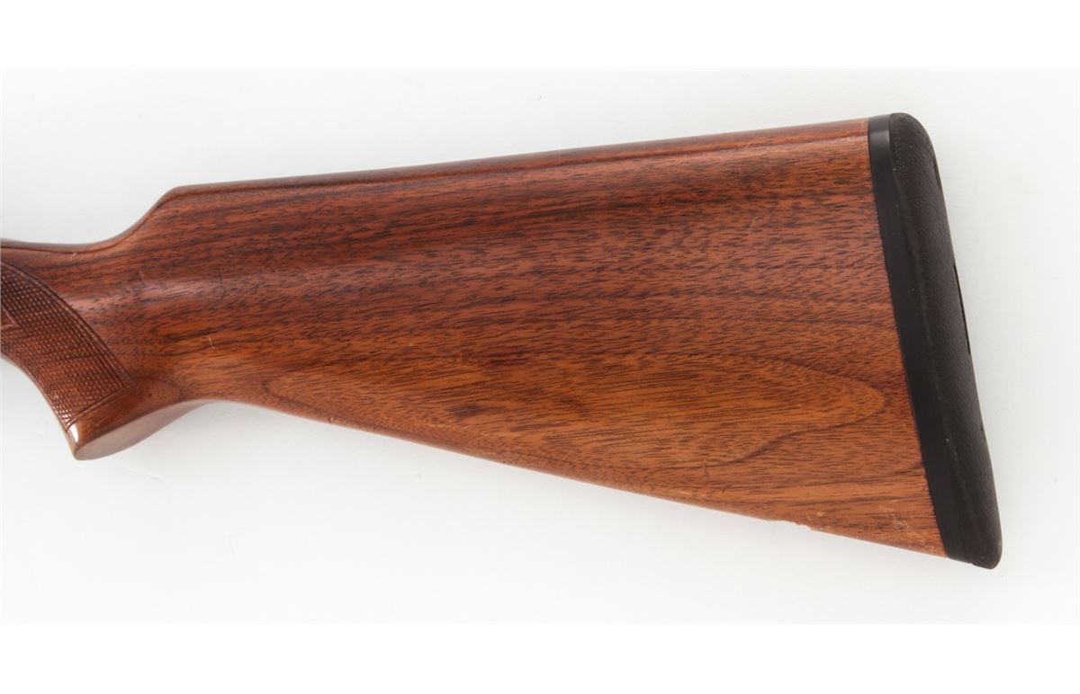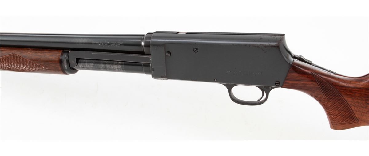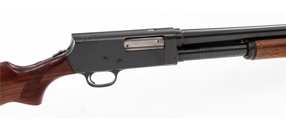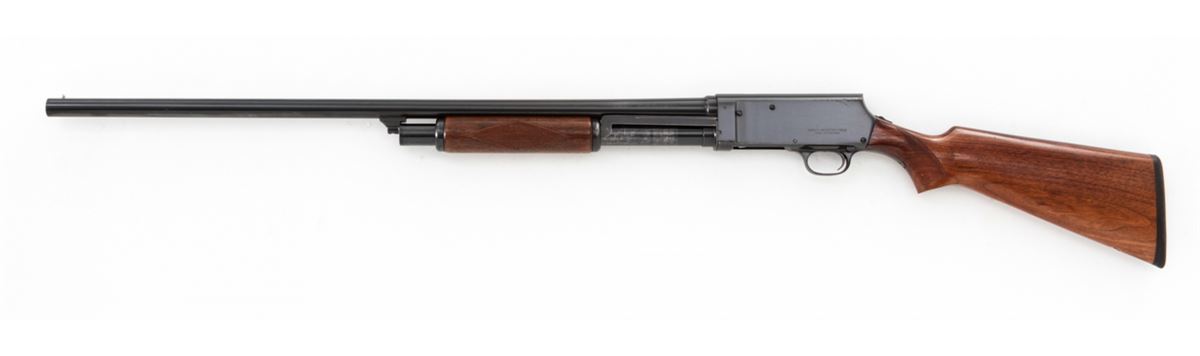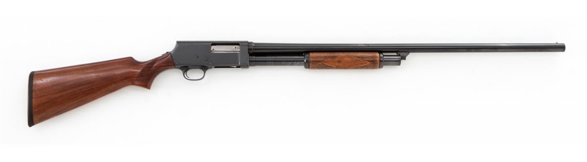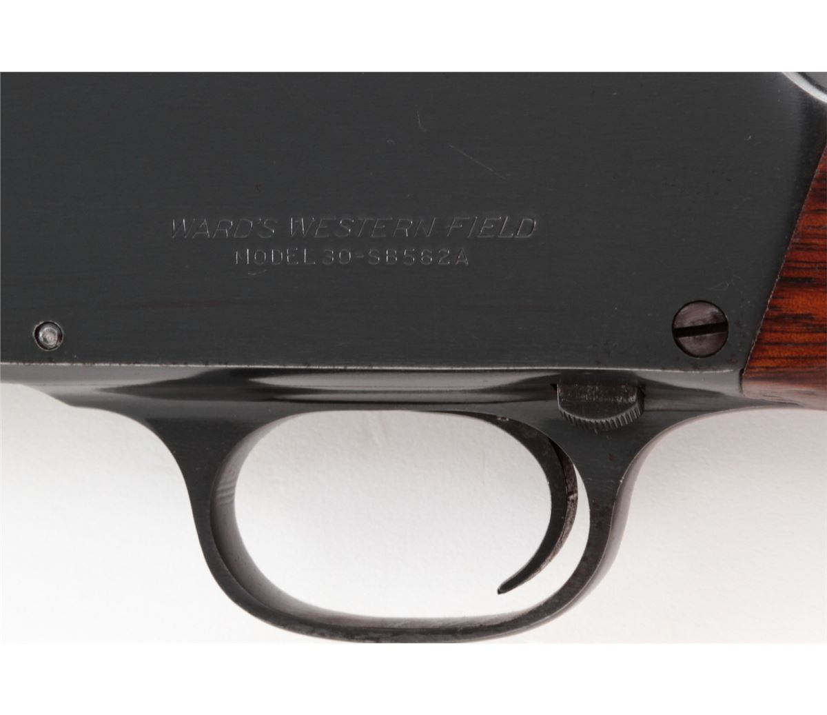 Wards-Westernfield Model 30 (Stevens 520) Pump Action Shotgun, #SB562A, 12 ga., 30'' round barrel for 2-3/4'' shells choked Mod., blue finish, checkered walnut stock, with later black rubber butt pad. Condition is excellent showing minor discoloration near top rear of receiver, thinning in actioning areas of magazine tube, with light scuffs and scratches to stock. Crisp action, bright bore. Est.: $300-$500. (C&R)