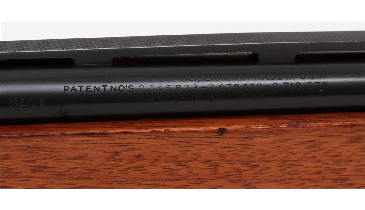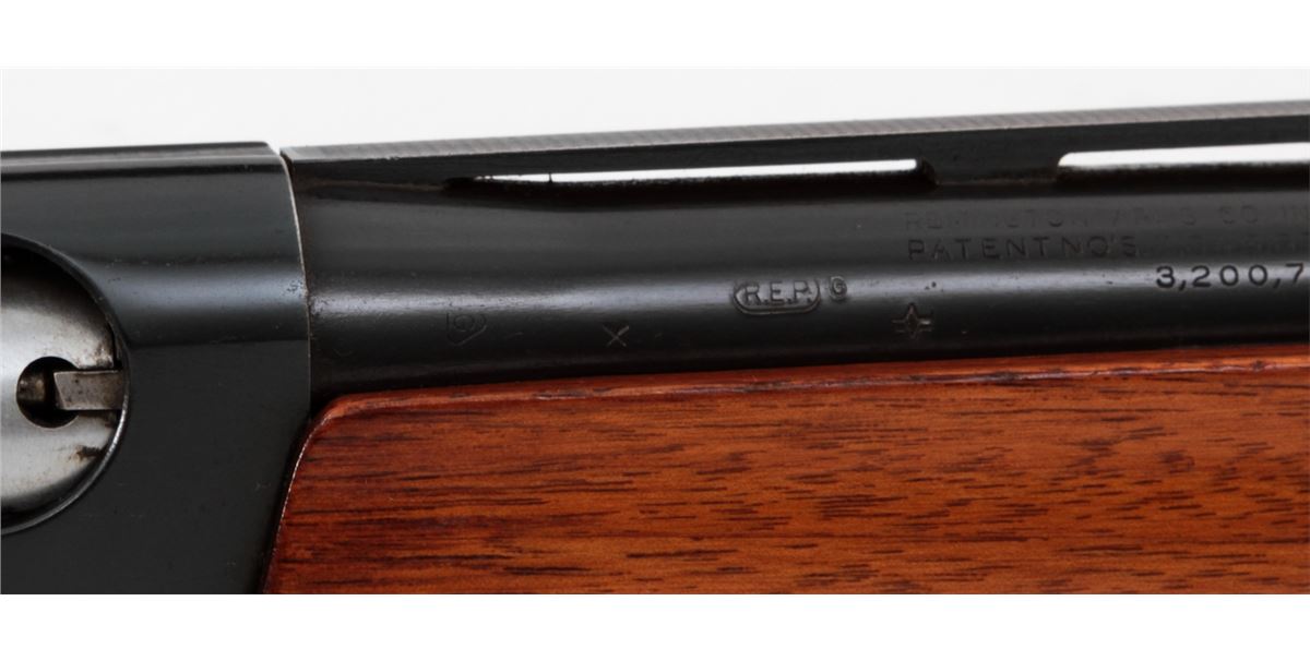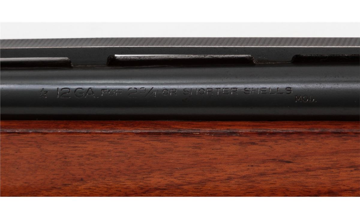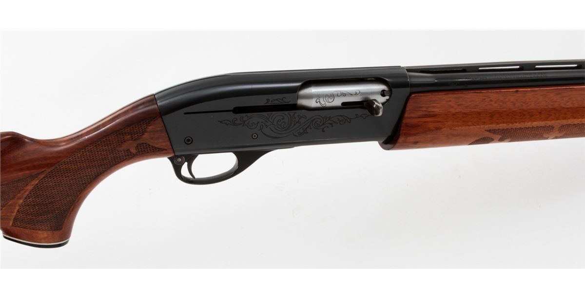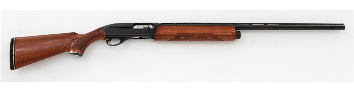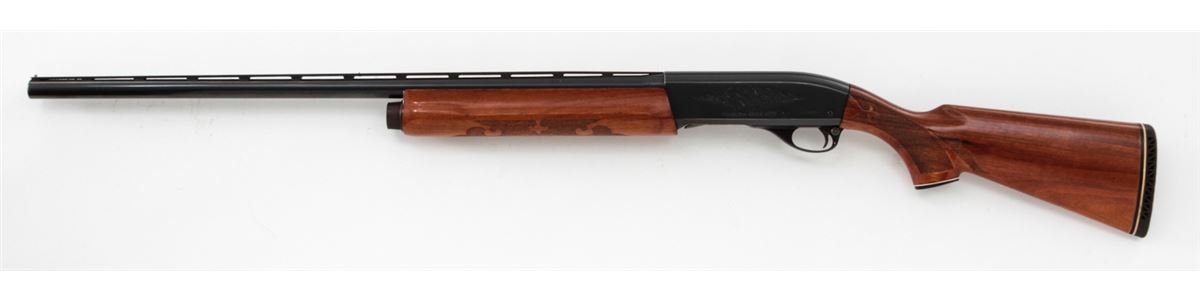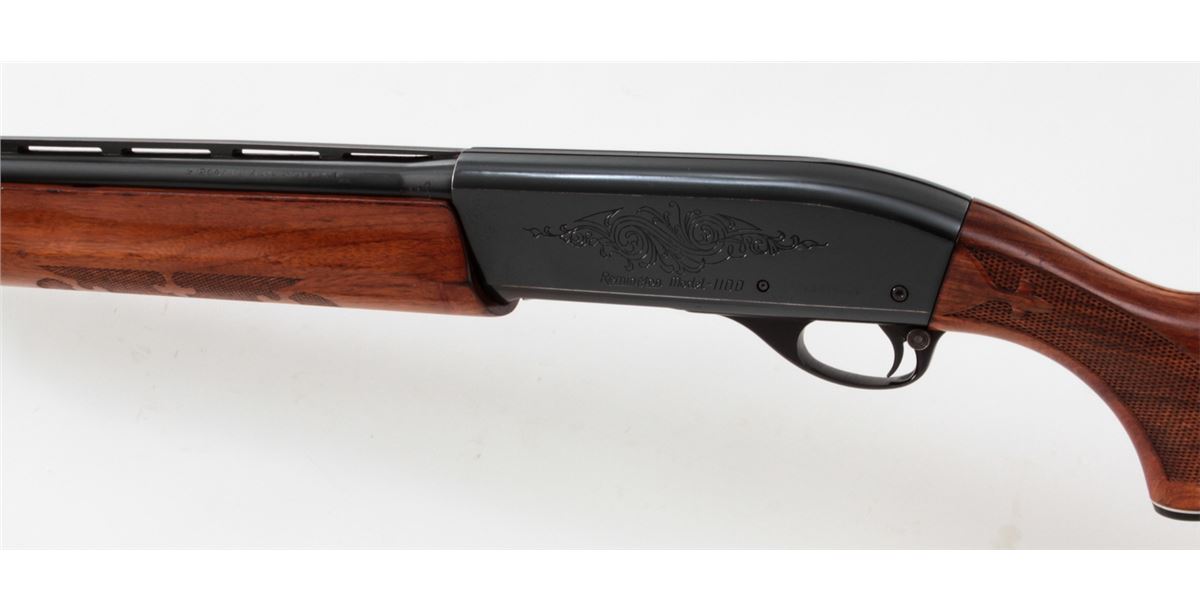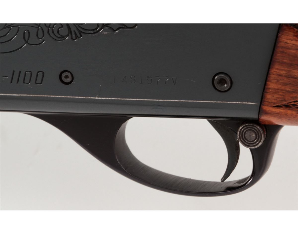 Remington Model 1100 Semi-Automatic Shotgun, #L481977V, 12 ga., 28'' vent rib barrel choked Mod. For 2-3/4'' shells, blue finish, pressed checkered walnut stock. Condition is fine showing light field use retaining approx. 96% blue. Stock with light handling marks. Crisp action, fine bore. Est.: $250-$400. (C&R)