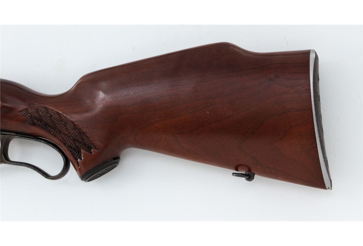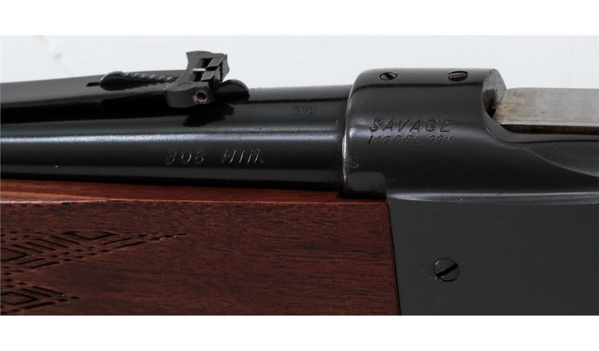 Savage Model 99M Lever Action Rifle, #1123727, .308 Win. cal., 22'' barrel, blue finish, pressed checkered walnut stock, with factory aluminum buttplate. Jeweled bolt, cartridge counter, cocking indicator, and tang safety. Condition is excellent showing just light handling marks to flat sides of frame and stock. Action is crisp, bore is bright. Est.: $400-$600. (Modern)