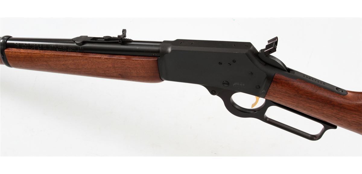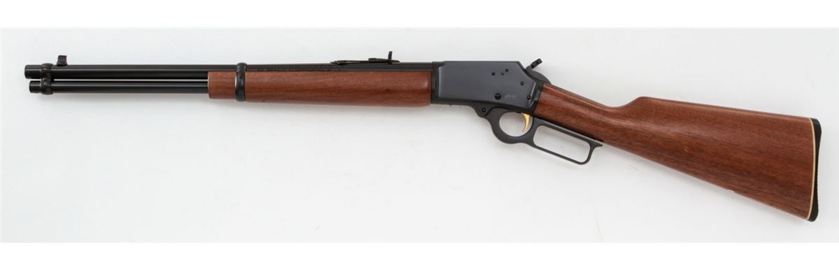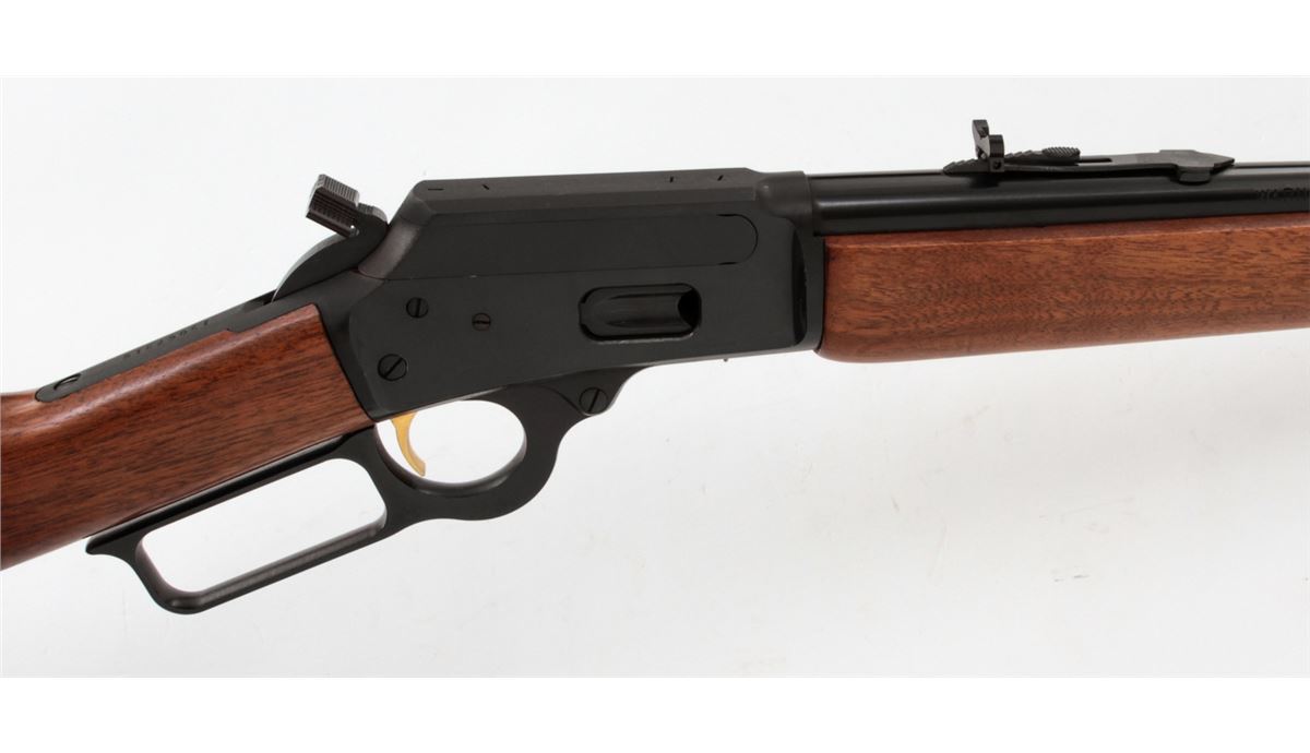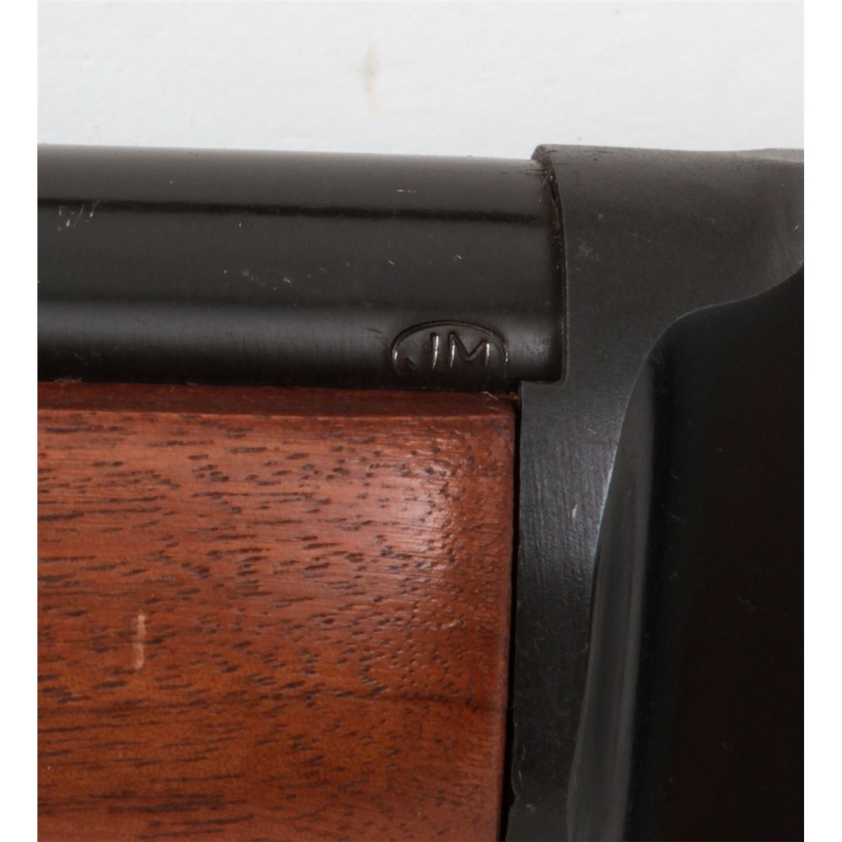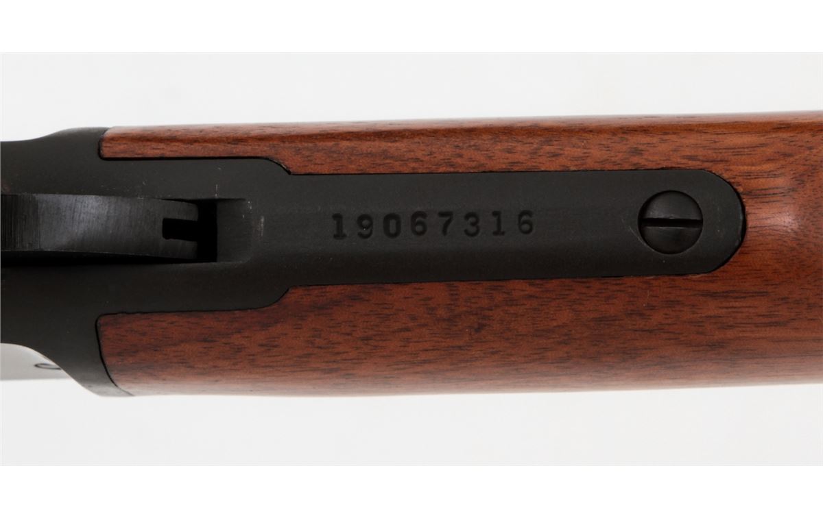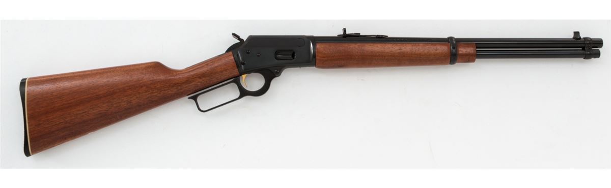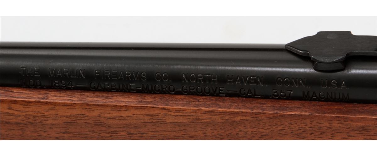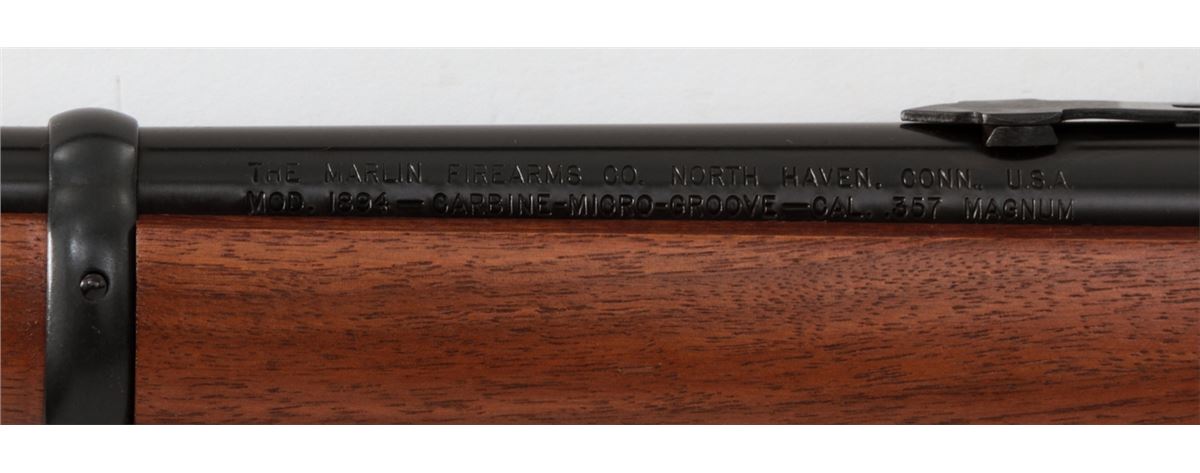 Marlin Model 1894 Lever Action Carbine, #19067316, .357 mag. cal., blue finish, 18-1/2'' round barrel with semi-buckhorn rear and blade front sight, receiver tapped for scope bases, gold-plated trigger, offset hammer spur, satin finish walnut stock and forearm, with black plastic Marlin buttplate. Mfg'd 1981. Condition is fine overall with light scuffs and storage marks. Bolt face and chamber show little firing use, if any. Est.: $400-$600. (Modern)