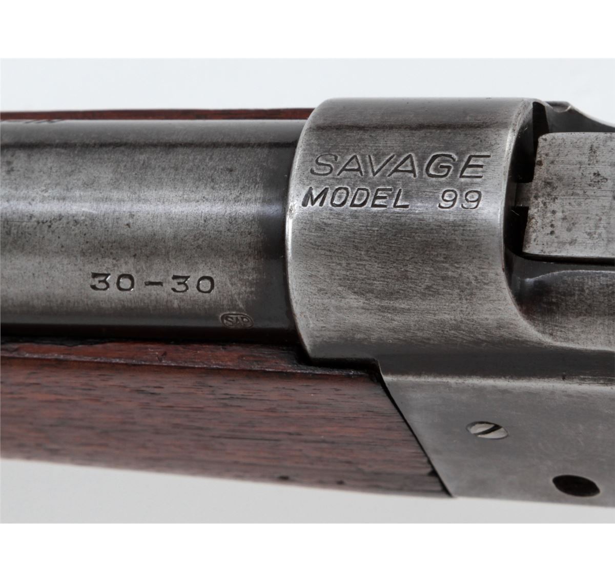 Savage Model 99 Lever Action Rifle, #329151, .30-30 cal., 22'' barrel, blue finish, walnut stock and forend. Condition is very good retaining approx. 75% blue. Stock with light scuffs and scratches and repairs near upper tang and at tang. Good action, bright bore. Est.: $200-$400. (C&R)