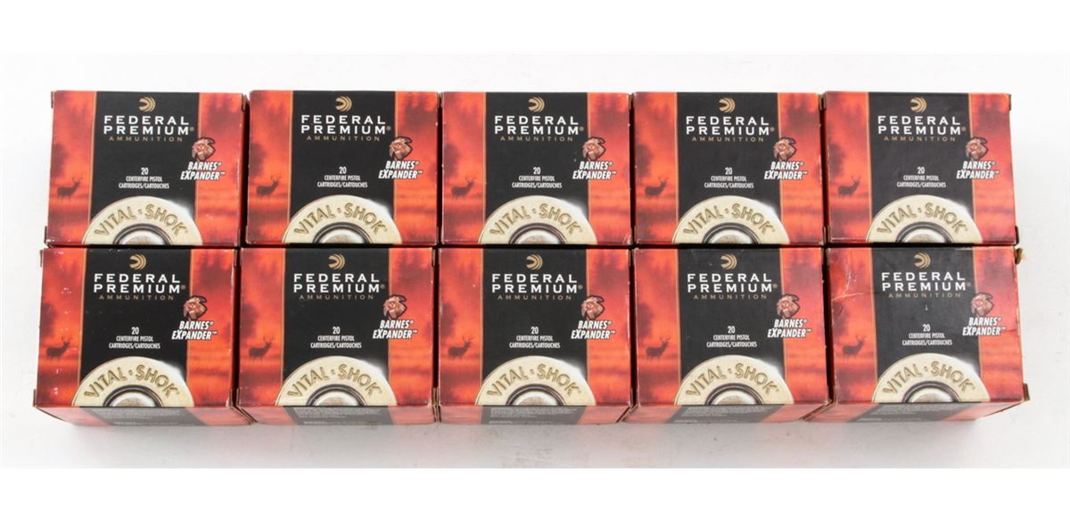 Ammo Lot: Ten (10) Boxes (200 rds.) of Federal Premium .460 S&W cal., 275 grains Barnes Expander, #P460X81. All brand new in original boxes. Retails @ $69.95/box. Est.: $400-$500/lot. (Field Time)