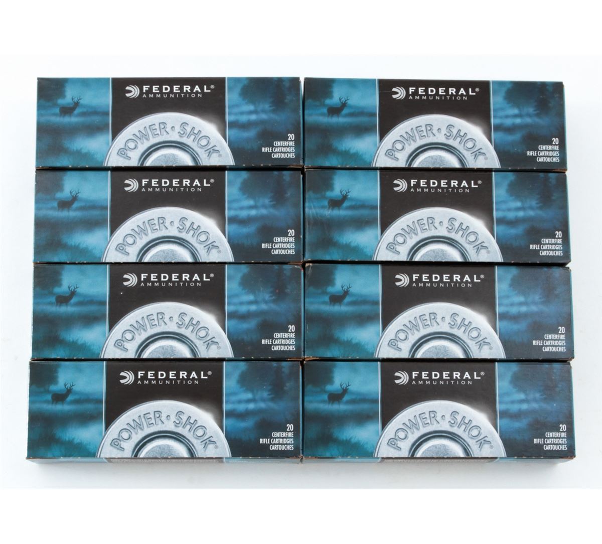 Ammo Lot: 160 Rounds of Federal Power Shok .300 WSM 180-grain soft-point cartridges. Eight (8) 20-round boxes, all brand new in original packaging. Some boxes show light shelf wear. Retails @ $310/lot. Est.: $200-$300/lot. (Field Time)