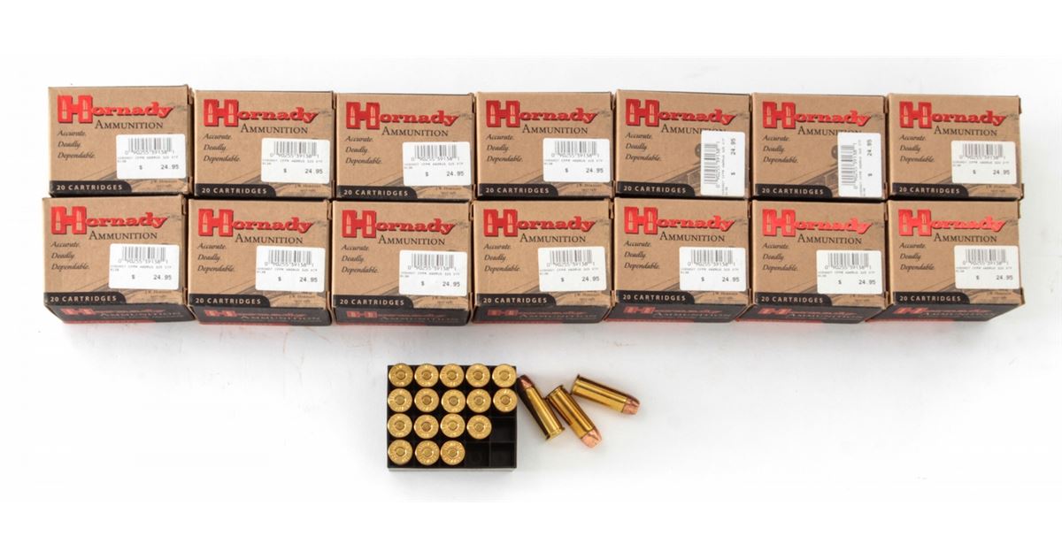 Ammo Lot: 280 Rounds of Hornady Custom .480 Ruger 325-grain HP/XTP mag. cartridges. Fourteen (14) 20-round boxes, all brand new in original packaging. Retails @ $350/lot. Est.: $225-$325/lot. (Field Time)