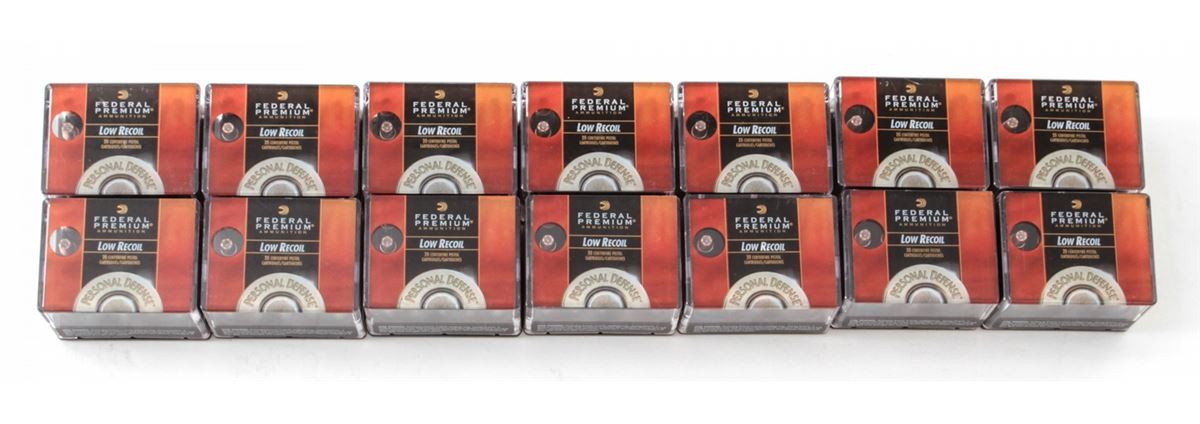 Ammo Lot: 280 Rounds of Federal Premium Low-Recoil .327 Fed. Mag. 85-grain Hydra-Shok JHP cartridges. Fourteen (14) 20-round boxes, all brand new in original packaging. Retails @ $350/lot. Est.: $225-$325/lot. (Field Time)