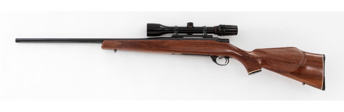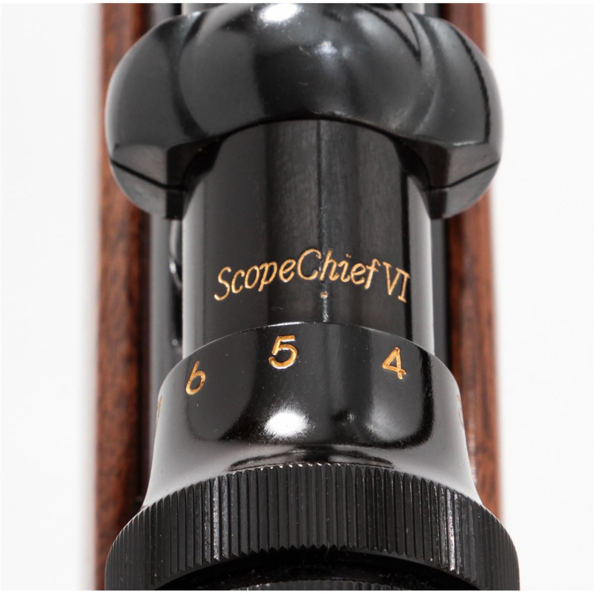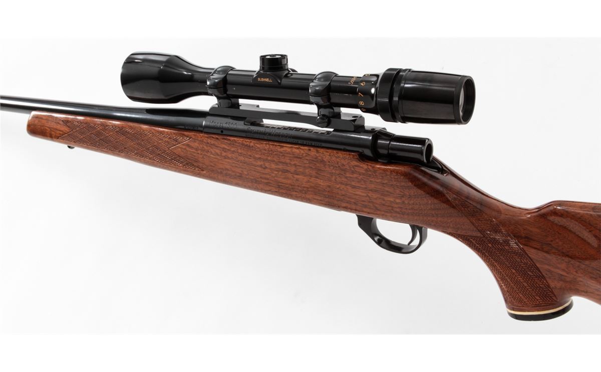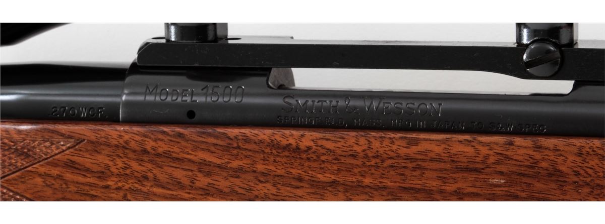 Smith & Wesson Model 1500 Bolt Action Rifle, #PN10216, .270 cal., 22'' barrel,b lue finish, machine-turned bolt, skipline checkered walnut cheekpiece stock. Topped with a Bushnell Scope Chief VI 3-9x40 scope on Redfield rings and mounts. Condition is excellent showing light marks from handling. Upper scope turret missing adjusting screw and cover. Est.: $400-$600. (Modern)