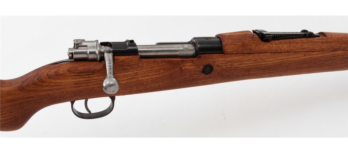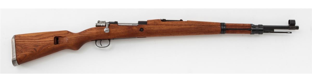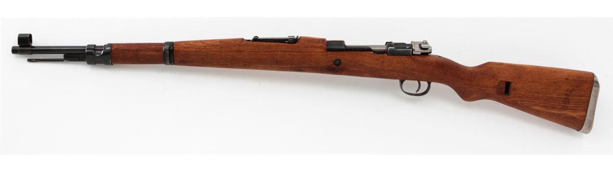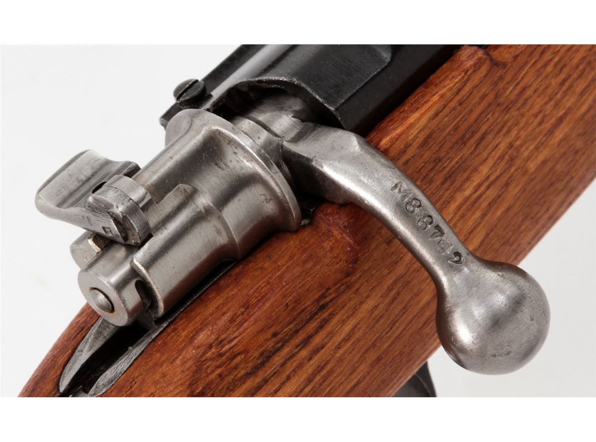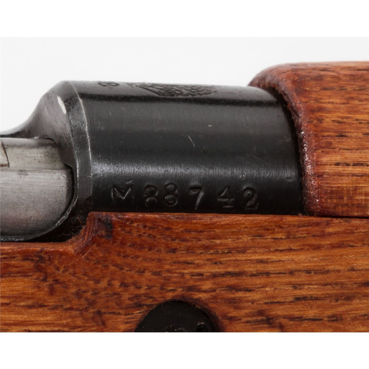 Yugoslavian M48 Mauser Bolt Action Rifle, #M88742, 8mm, 24'' barrel, blue finish, hardwood stock. Condition is excellent, appearing as new, with all matching numbers, and light importation marks to bottom portion of barrel. Est.: $250-$400. (C&R)