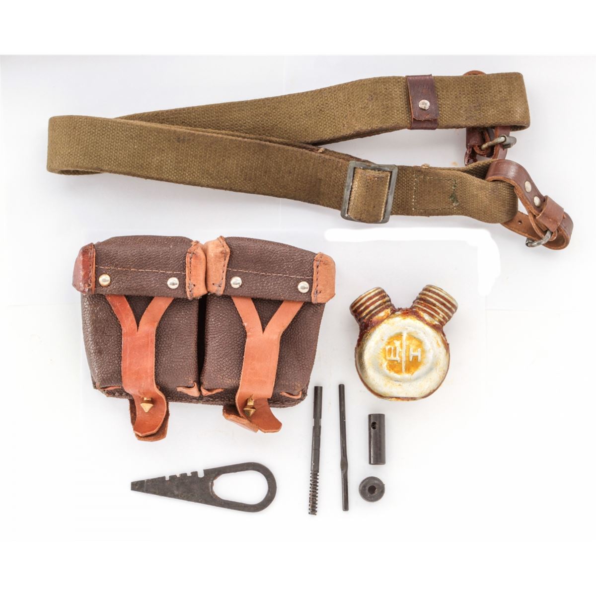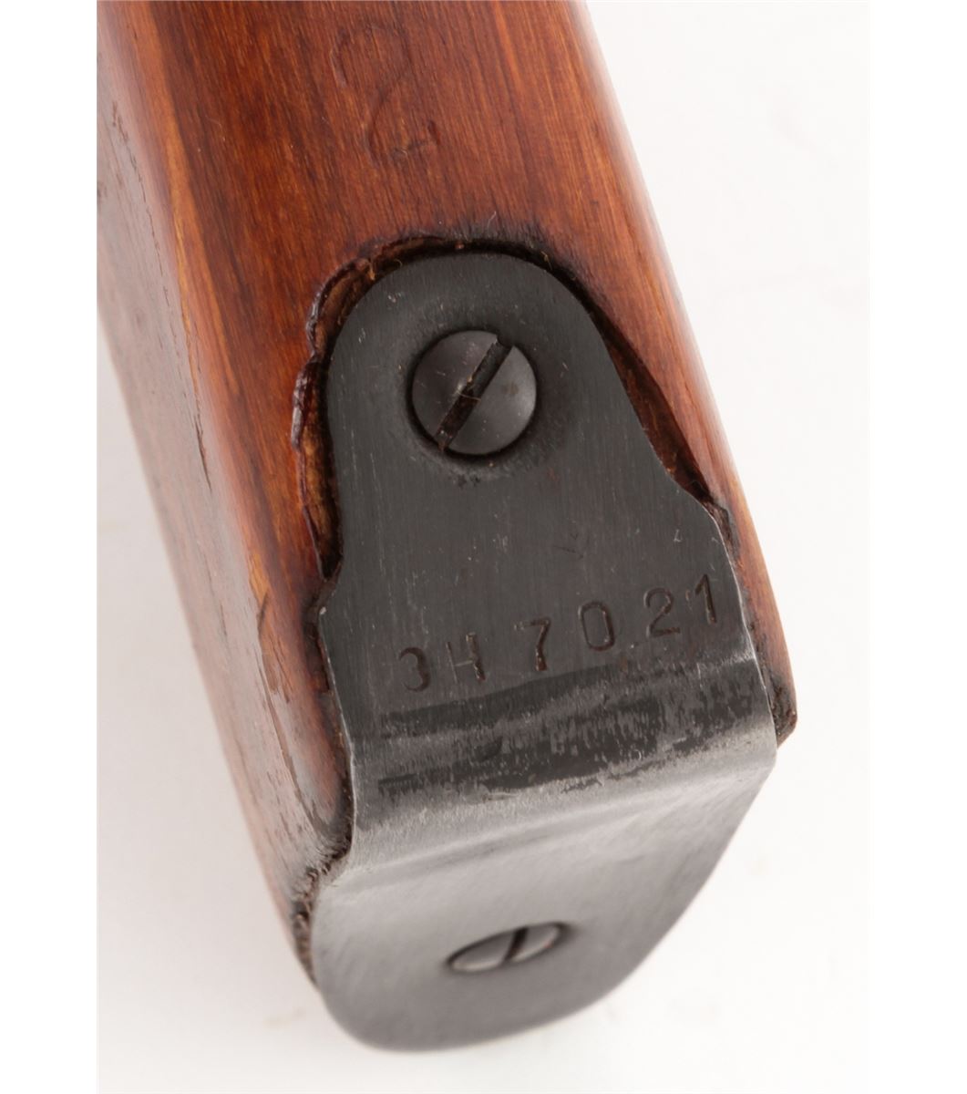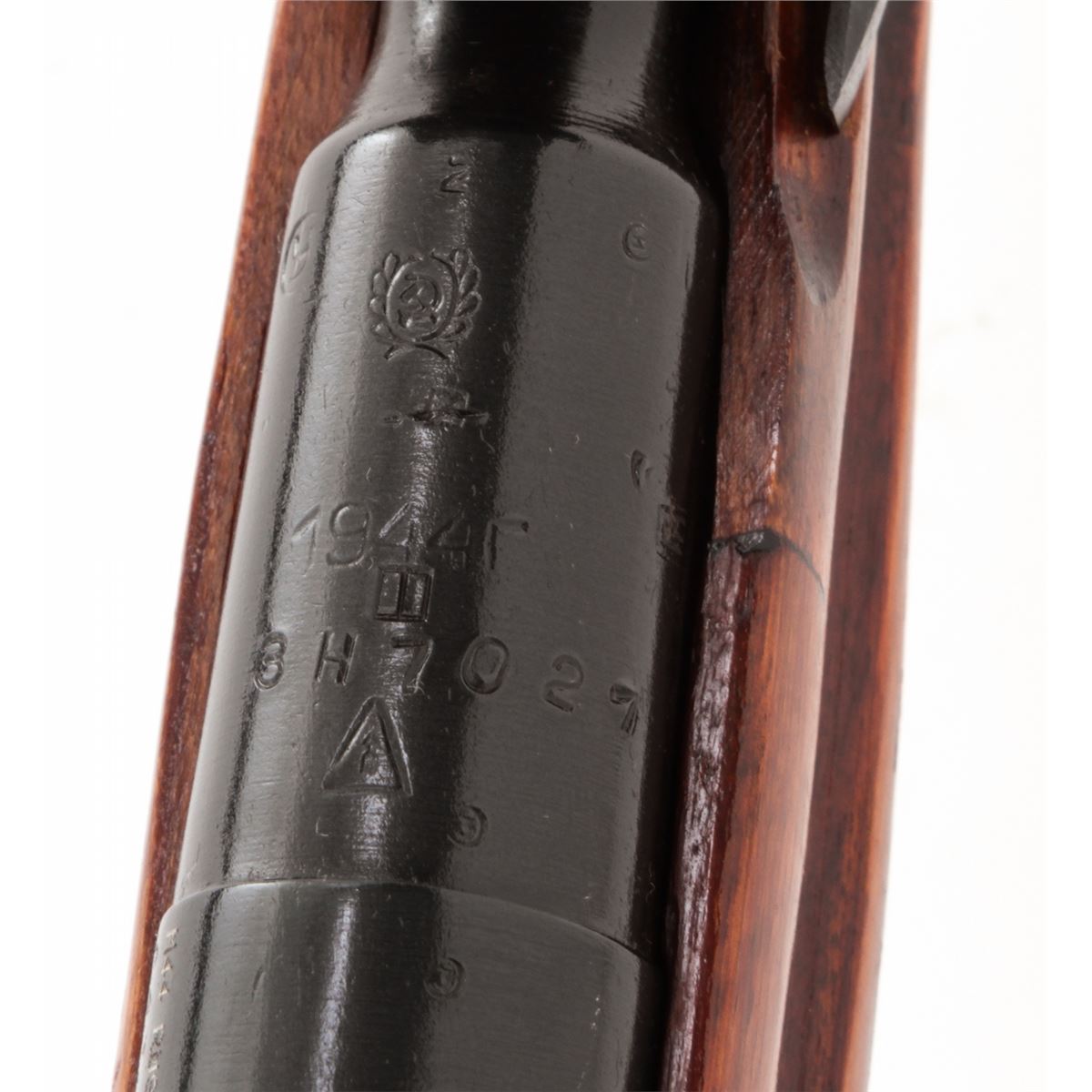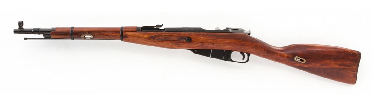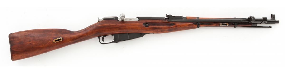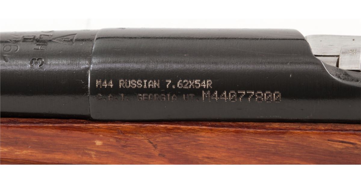 Mosin-Nagant Model 1944 Bolt Action Carbine, #M44077800, 7.62x54R cal., 20.5'' barrel, blue finish, hardwood stock, with sling and cleaning kit. Condition is excellent as imported in the early 1990s. Stock with scuffs to finish. Matching numbered bolt and some mixed parts. Action is crisp, bore is good. Lightly import marked. Est.: $200-$300. (C&R)