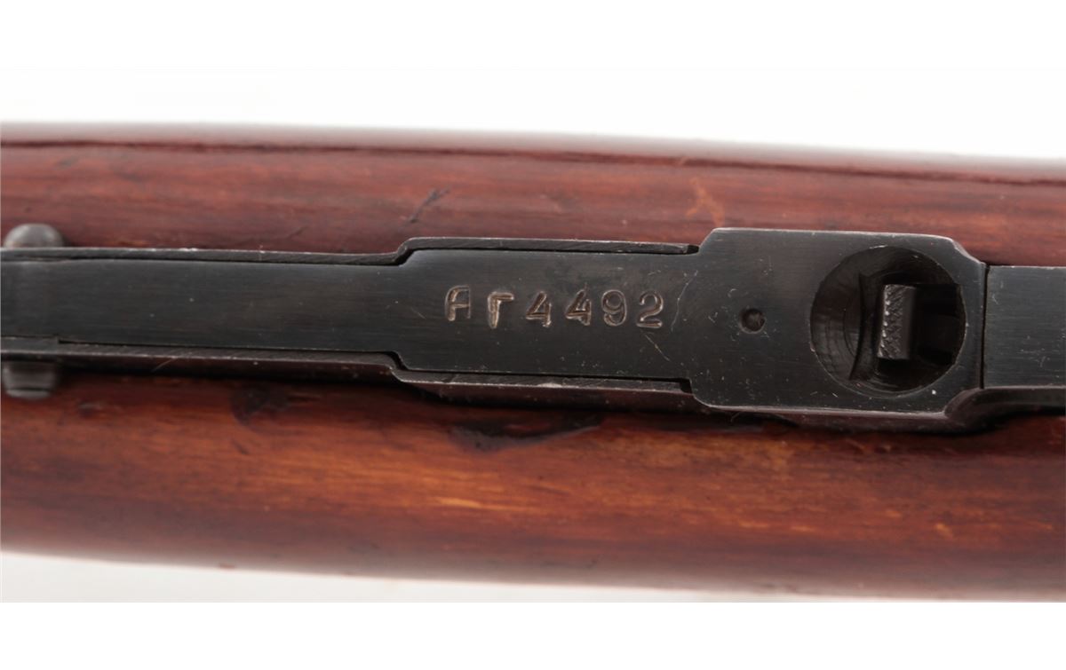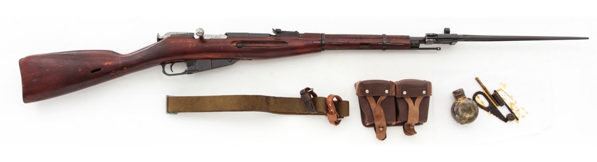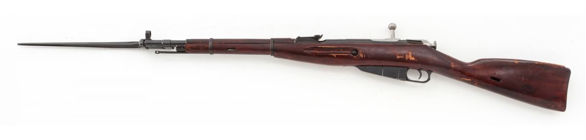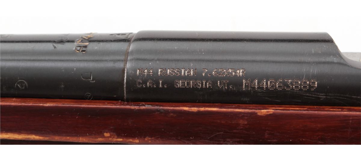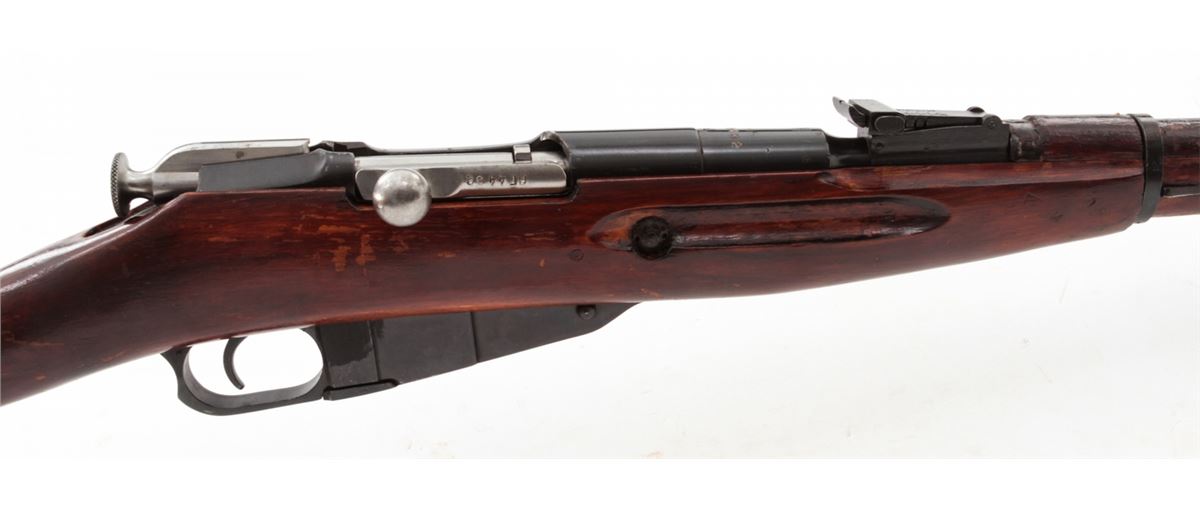 Mosin-Nagant Model 1944 Bolt Action Carbine, #M44063889, 7.62x54R cal., 20.5'' barrel, blue finish, hardwood stock, with sling and cleaning kit. Condition is excellent as imported in the early 1990s. Stock with scuffs to finish. Matching numbered bolt and some mixed parts. Action is crisp, bore is good. Lightly import marked. Est.: $200-$300. (C&R)