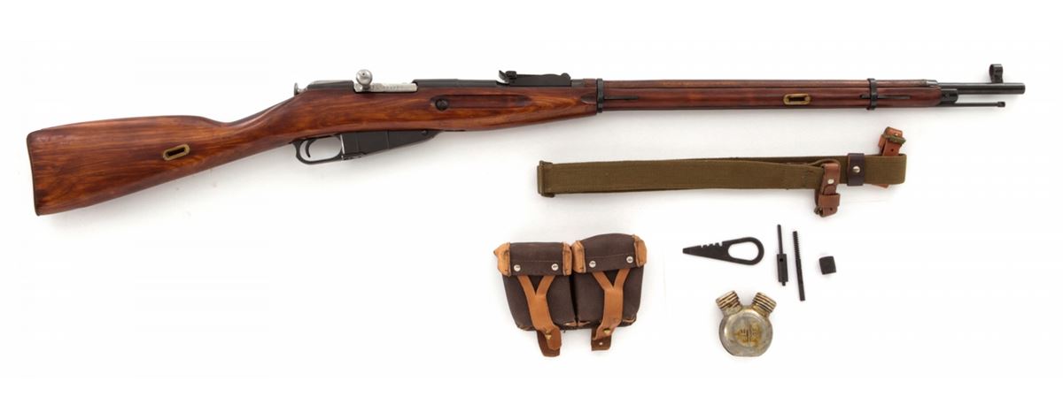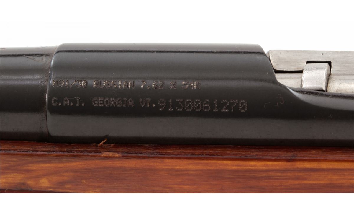 Mosin-Nagant M91/30 Bolt Action Rifle, #9130061270, 7.62x54R cal., 29'' barrel, blue finish, dark stained beech stock, with sling and cleaning kit. Condition is excellent as imported in the early 1990s, retaining approx. 96% arsenal blue. Stock with light pressure marks. Crisp action, very good bore, with matching number bolt and small parts. Lightly import marked. Est.: $150-$300. (C&R)