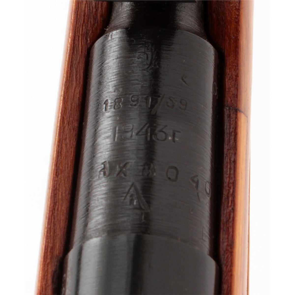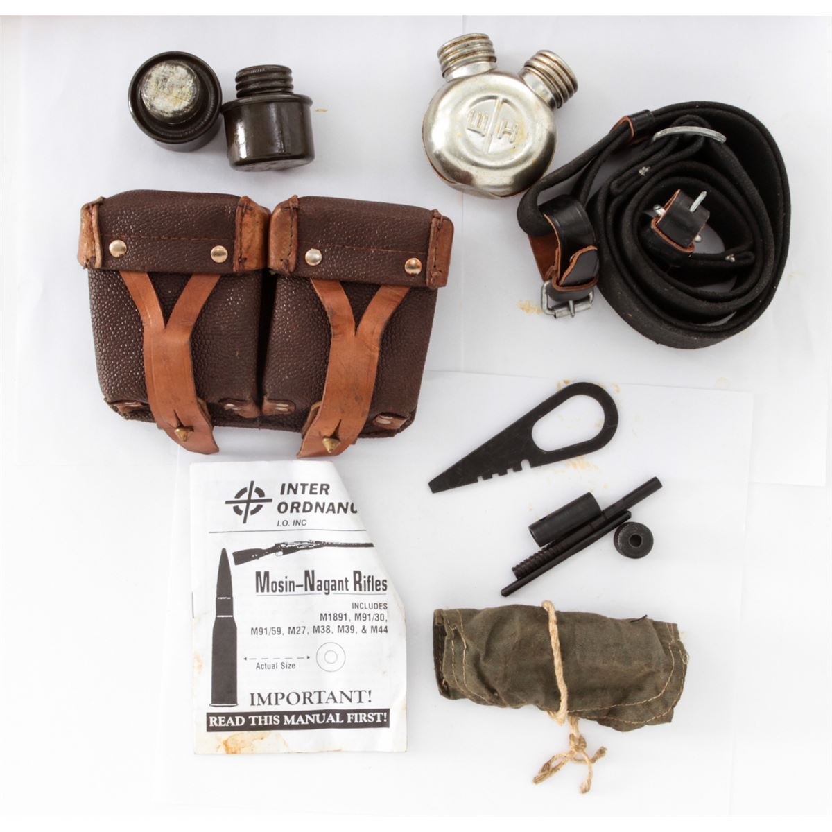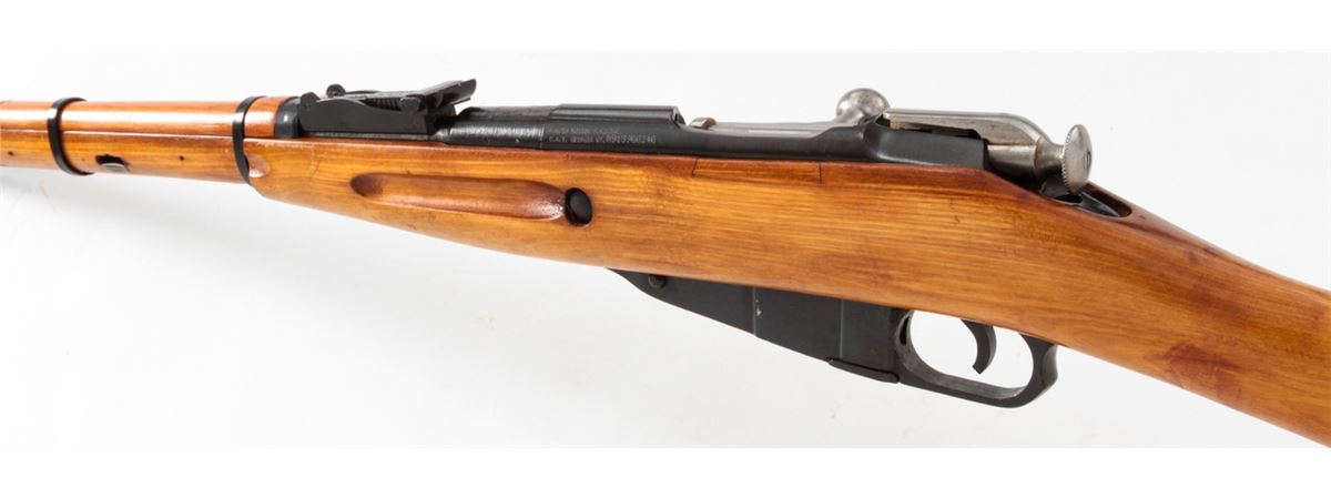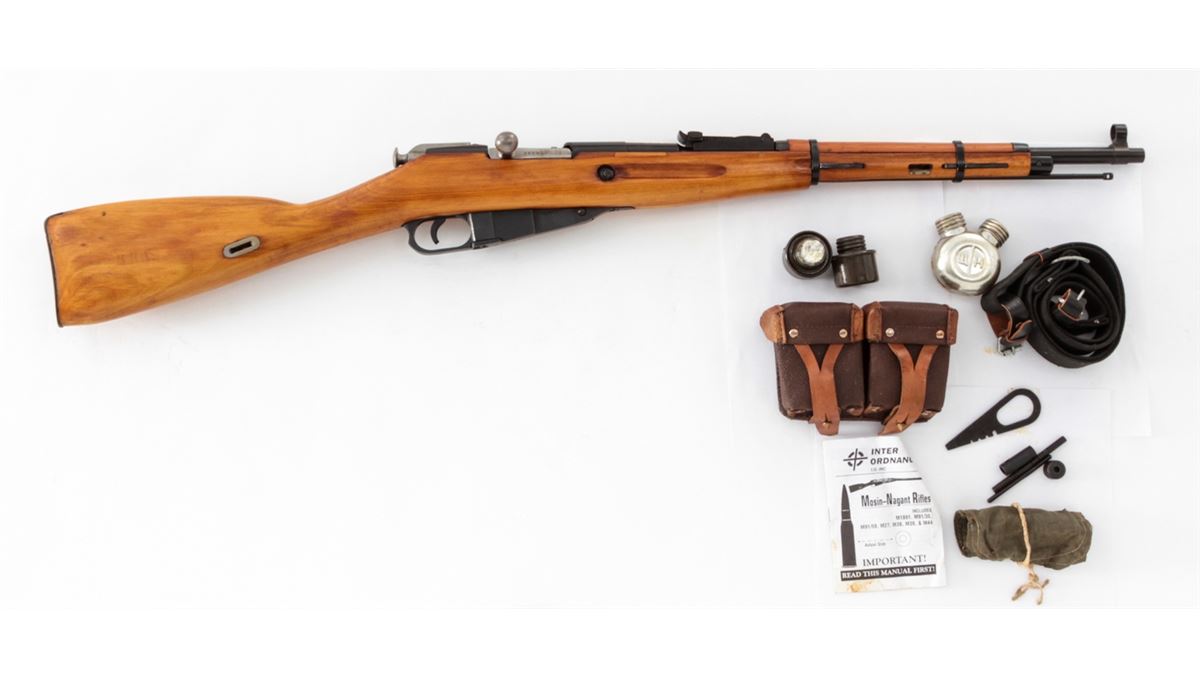 Mosin-Nagant M91/59 Bolt Action Carbine, #M915900240, 7.62x54R cal., 20.5'' barrel, blue finish, beech stock, with sling and cleaning kit. Condition is excellent with matching numbered bolt and some mismatched small parts. Action is crisp, bore is good. Lightly import marked. Est.: $150-$300. (C&R)