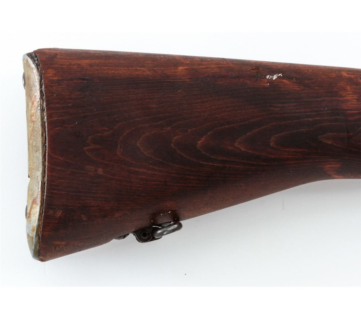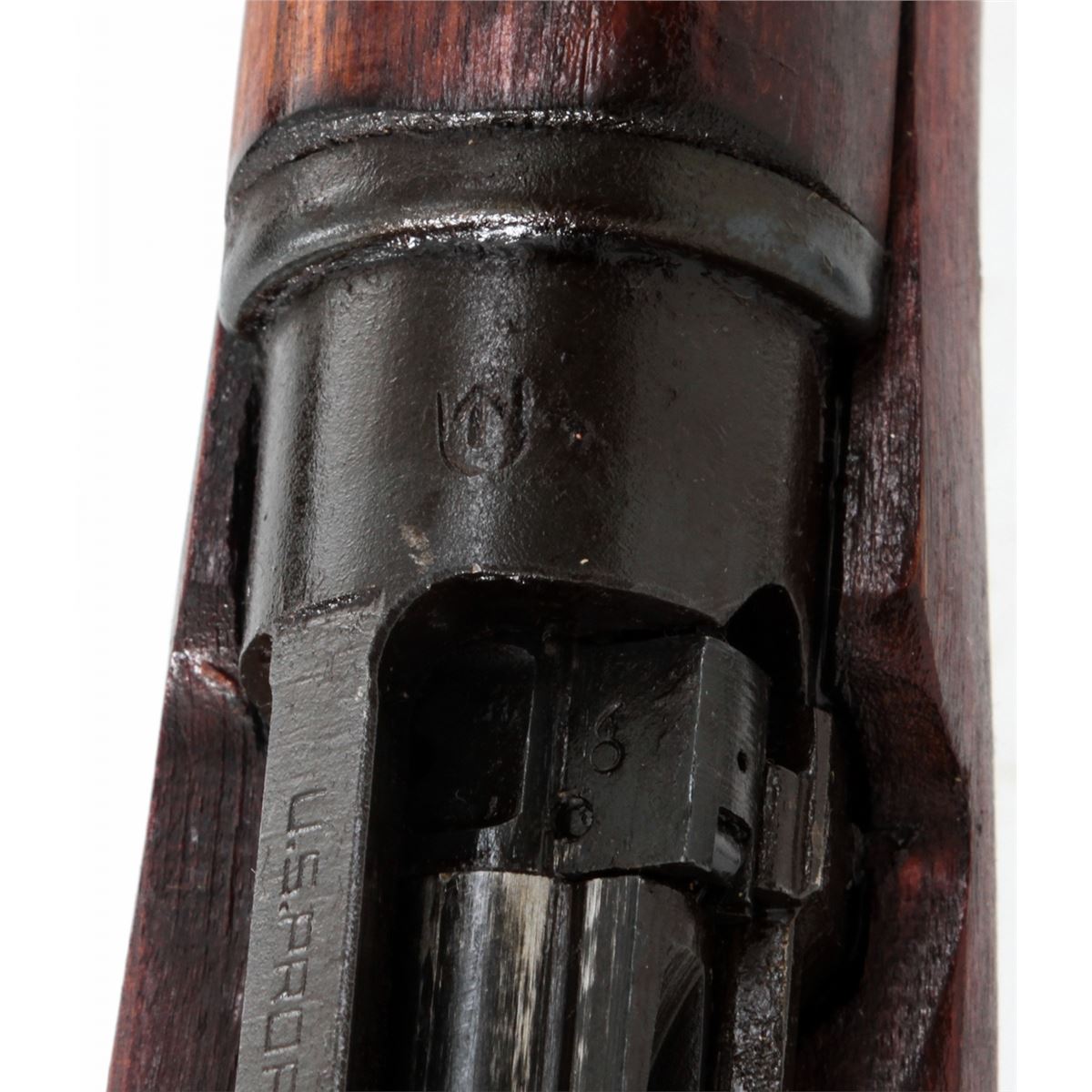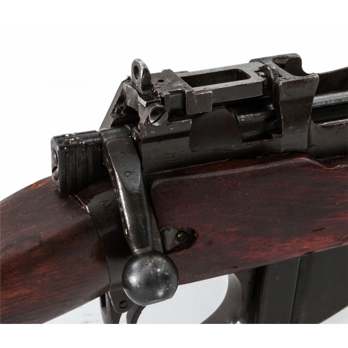 Savage made No. 4 MK I* Bolt Action Rifle, #3607245 (1942), .303 cal., 25'' barrel, phosphate finish, dark stained birch stock, and light importation markings to forward portion of receiver. Condition is excellent as overhauled retaining much of its arsenal preservative grease. Stock shows light impressions from handling. Good action, mirror bright bore. Rifle needs a thorough cleaning. Spike bayonet is included. Est.: $300-$500. (C&R)