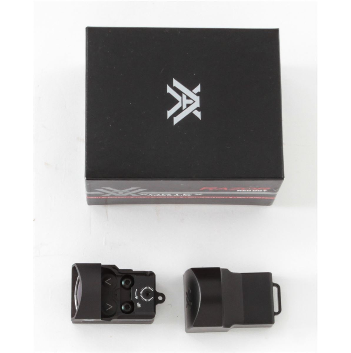 Vortex Razor Red Dot Sight, featuring adjustable elevation and windage dials with 3 MOA clicks. Brand new in original box with instructions. Retails @ $504.95. Est.: $300-$400. (Field Time)