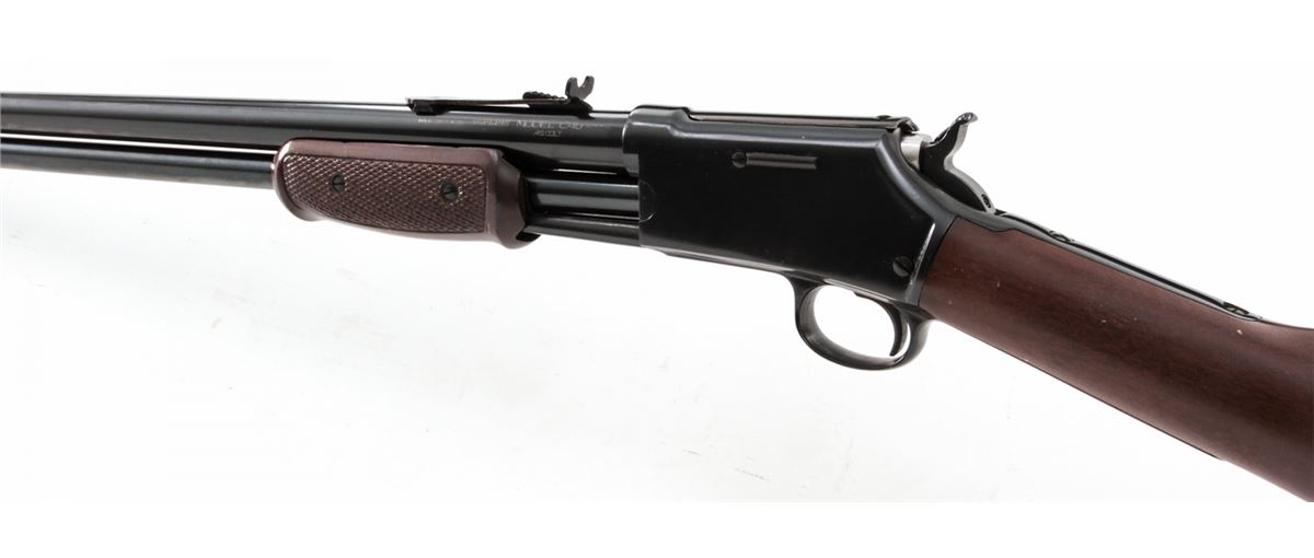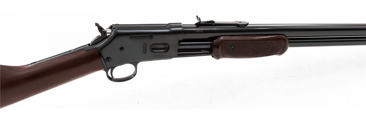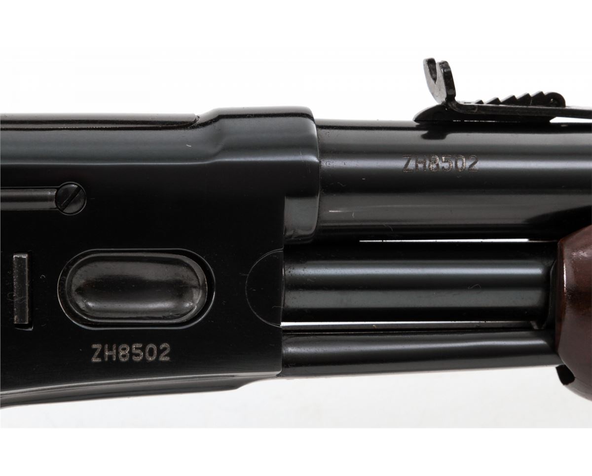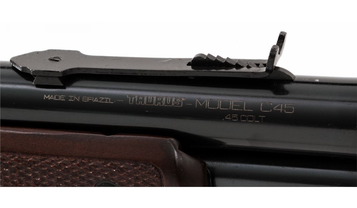 Taurus Model C45 Pump Action Rifle, #ZH8502, .45 Colt cal., 26'' barrel, blue finish, hardwood stock with checkered forend. Made in Brazil. Condition is about fine showing light marks from handling, predominantly as scuffs to stock. Action is crisp, bore is bright. Est.: $250-$450. (Modern)