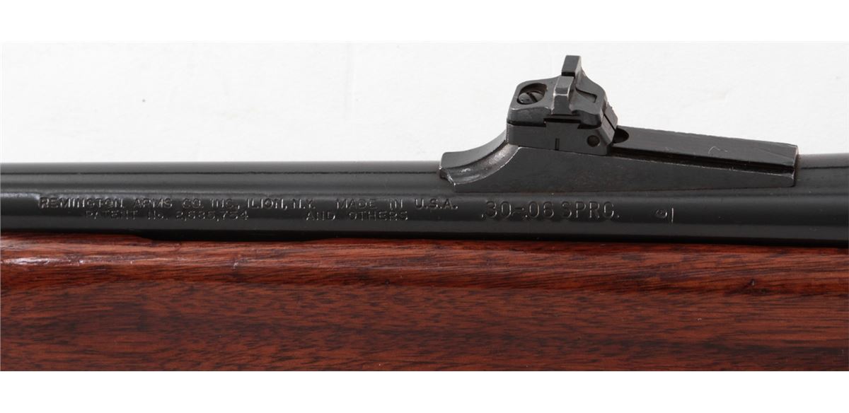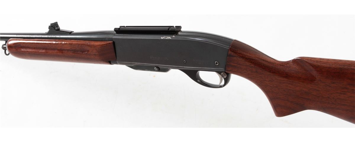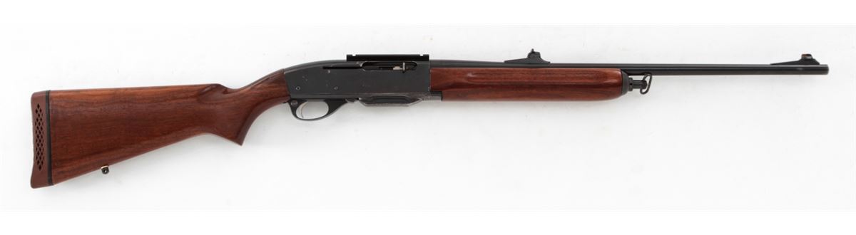 Remington Model 740 Woodmaster Semi-Automatic Rifle, #258337, .30-06 cal., 22'' barrel, blue finish, walnut stock and forend, with Weaver scope mounts. Condition is very good showing light to moderate field use, retaining approx. 92% blue. Stock with added varnish. Good action, bright bore. Est.: $200-$400. (C&R)