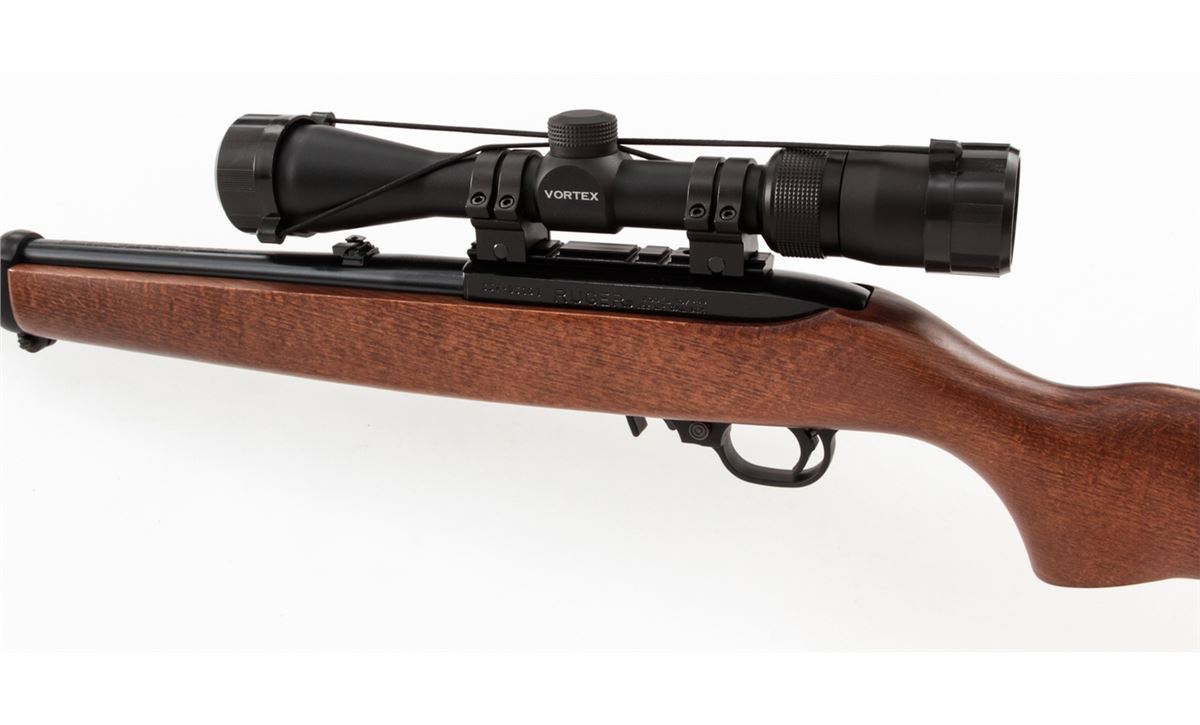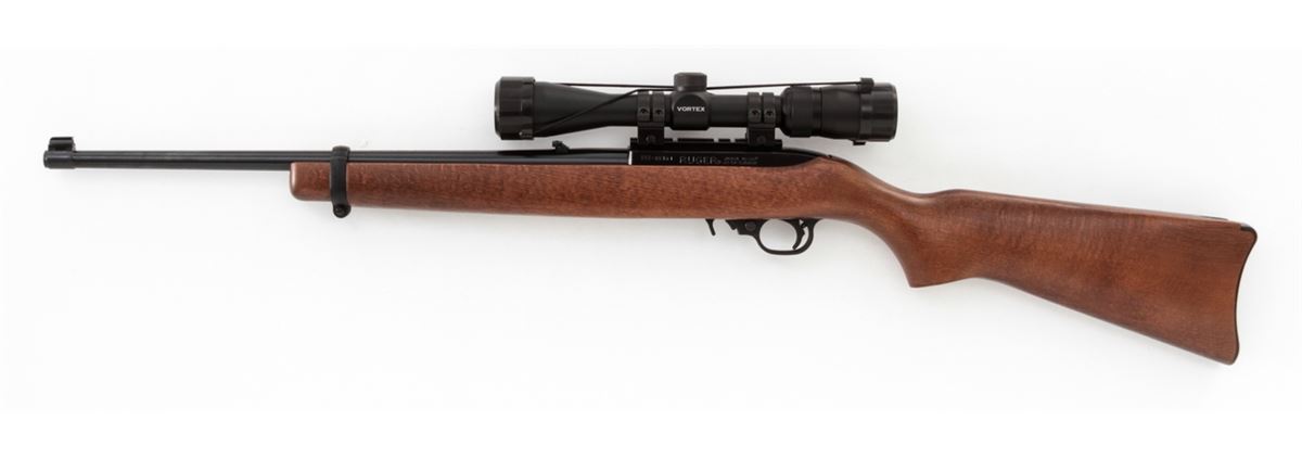 Ruger 10/22 Semi-Automatic Carbine, #357-05161, .22 LR cal., 18'' barrel, matte finish, birch stock, with Vortex 2-7x35 Diamondback scope. Condition is excellent appearing as new and unfired. Retails @ $500.00. Est.: $250-$400. (Modern) (Field Time)