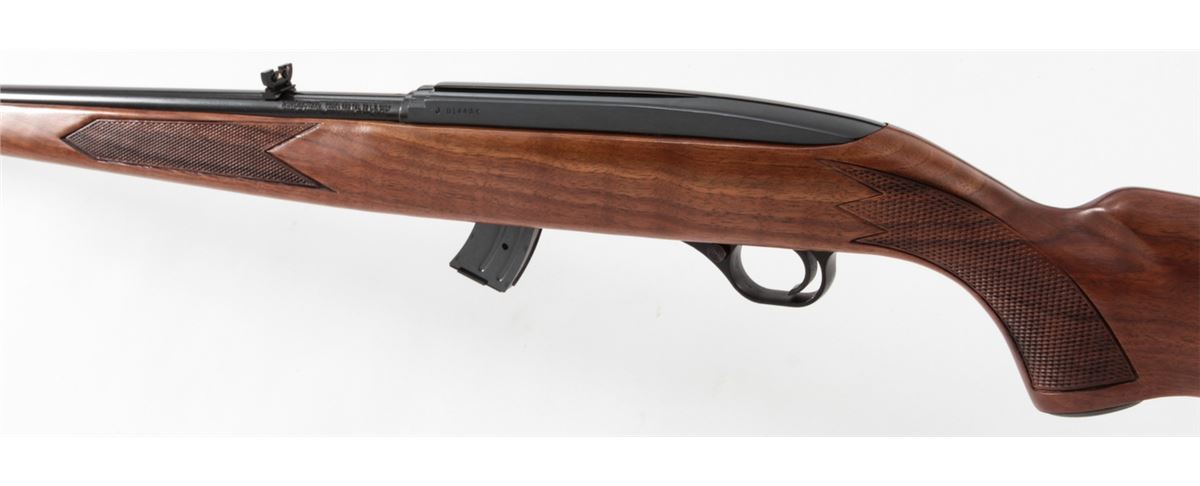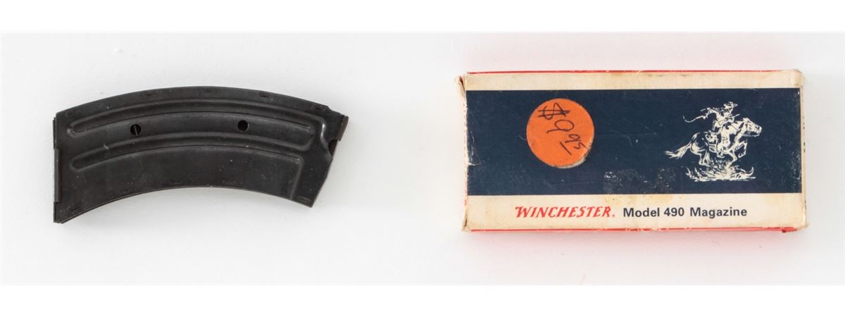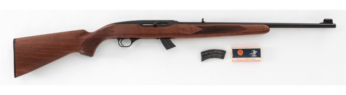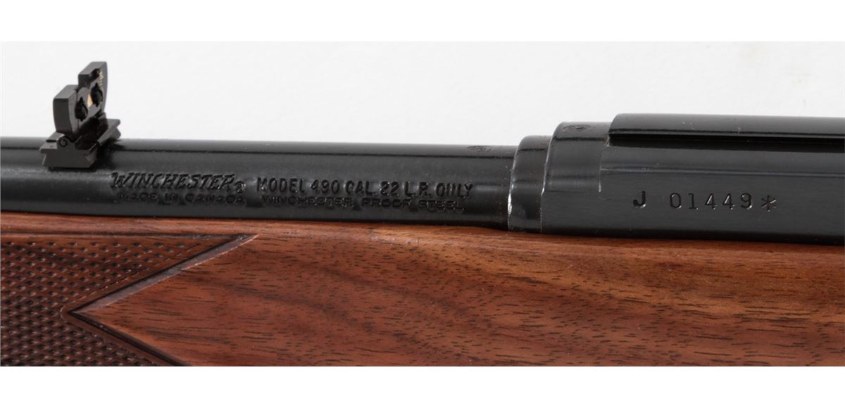 Winchester Model 490 Semi-Automatic Rifle, #J01449*, .22 LR cal., 22'' barrel, blue finish, pressed checkered walnut stock, with two (2) 10-round magazines. Condition is excellent showing little use. Est.: $250-$450. (C&R)