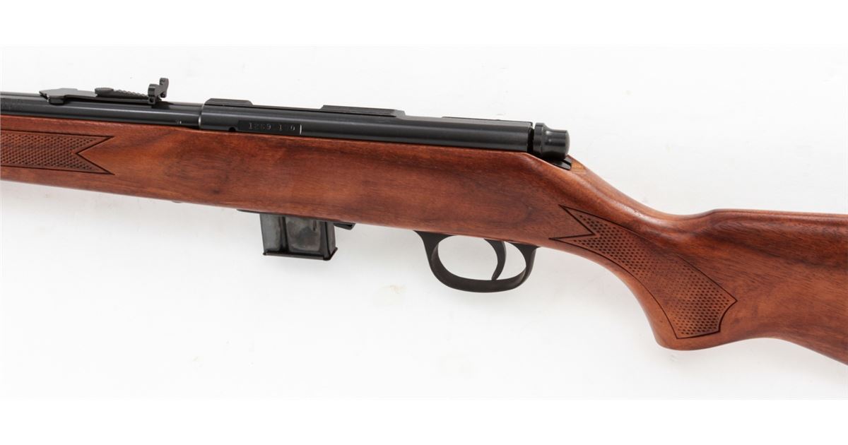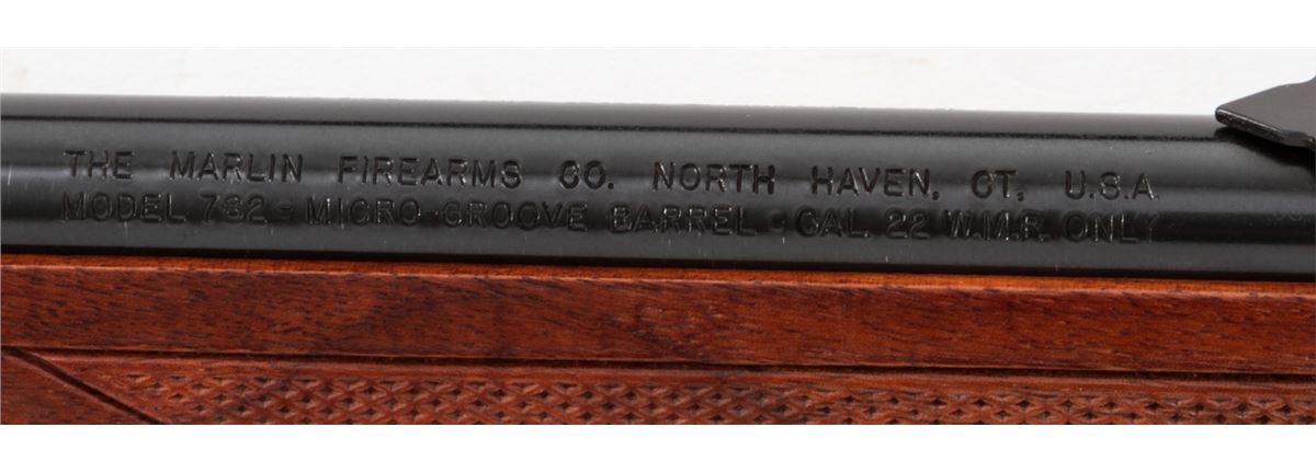 Marlin Model 782 Bolt Action Rifle, #12691100, .22 mag. cal., 22'' barrel, blue finish, pressed checkered walnut stock, with one magazine. Condition is excellent, appearing as new. Est.: $200-$400. (Modern)