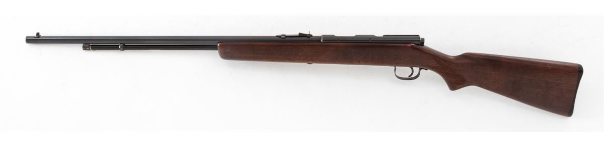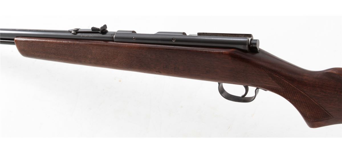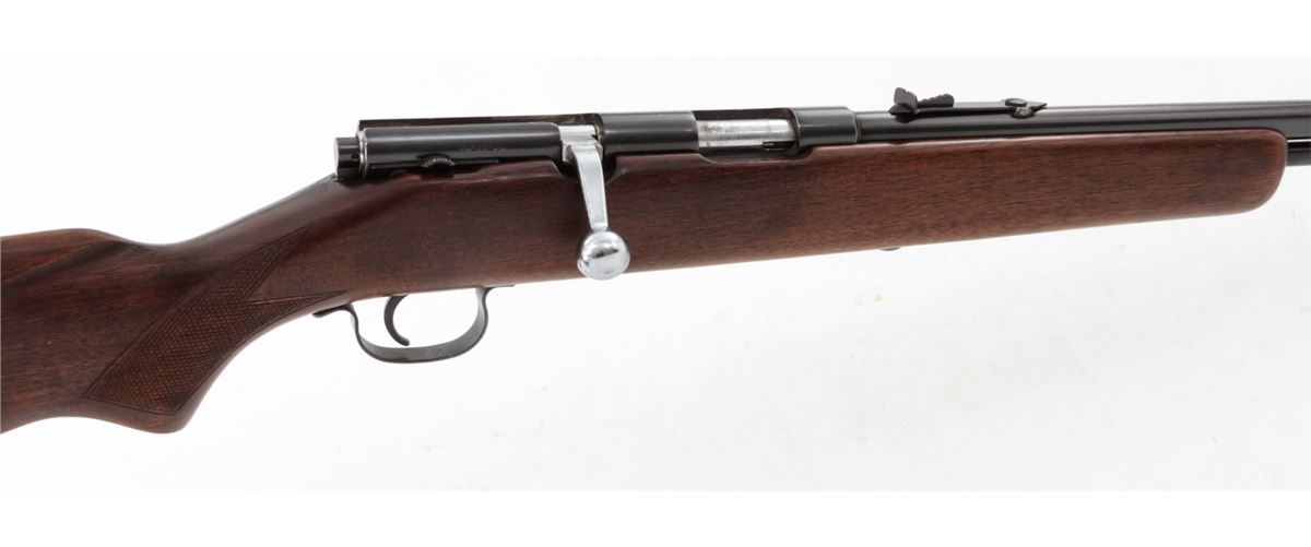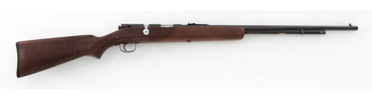 Savage Model 5 Bolt Action Rifle, NVSN, .22 SL/LR cal., 24'' barrel, blue finish, bright bolt, factory checkered walnut stock, with black plastic buttplate. Condition is excellent showing light scuffs to stock from handling. Crisp action, bright bore. Est.: $100-$200. (C&R)