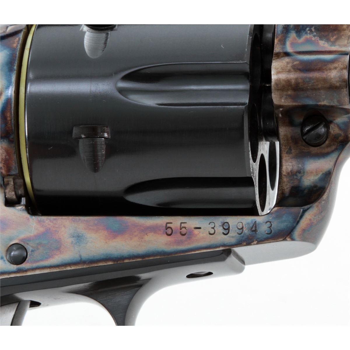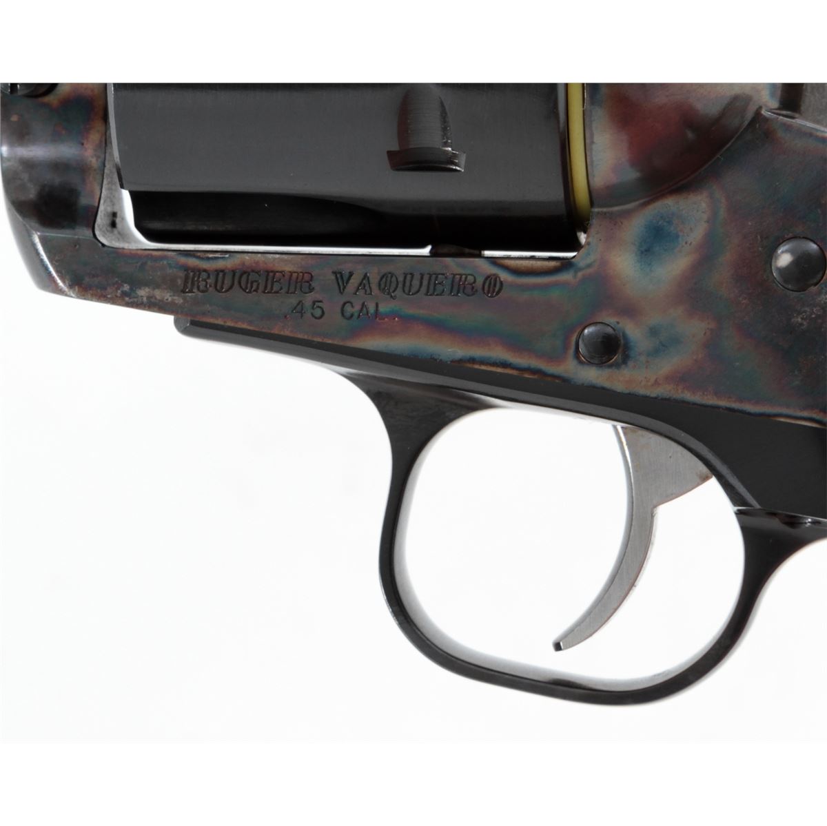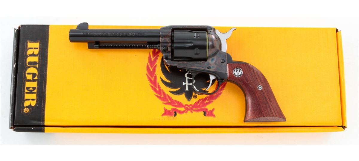Ruger Vaquero Single Action Revolver, #55-39943, .45 cal., 5-1/2'' barrel, blue finish, case hardened frame, smooth rosewood grips with inlaid Ruger medallions, in original box (with no end label). Condition is excellent, appearing near new, with light index line to cylinder and light overall marks from handling mainly to grips and backstrap. Action is crisp, bore is bright. Est.: $450-$600. (Modern/PPT)