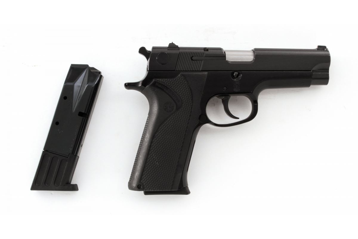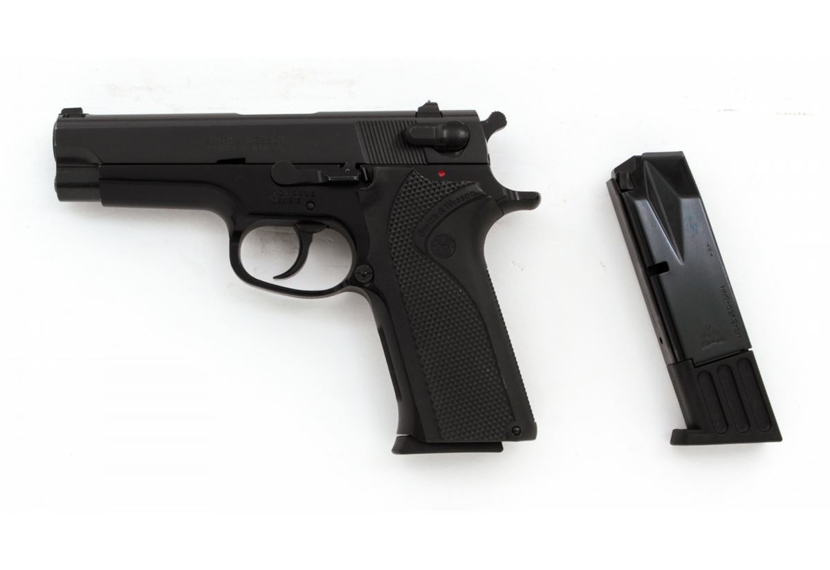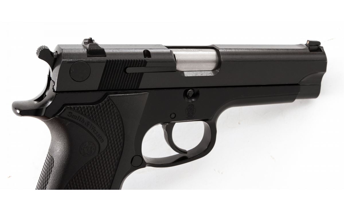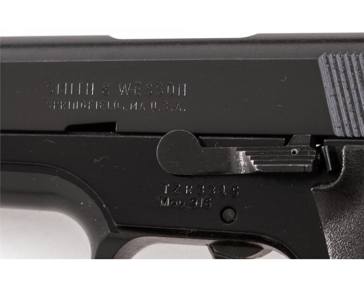 Smith & Wesson Model 915 Semi-Automatic Pistol, #TZR3315, 9mm, 4'' barrel, matte finish, factory checkered black plastic grips, with two (2) 10-round magazines. Condition is excellent showing little use. Est.: $350-$500. (Modern/PPT)