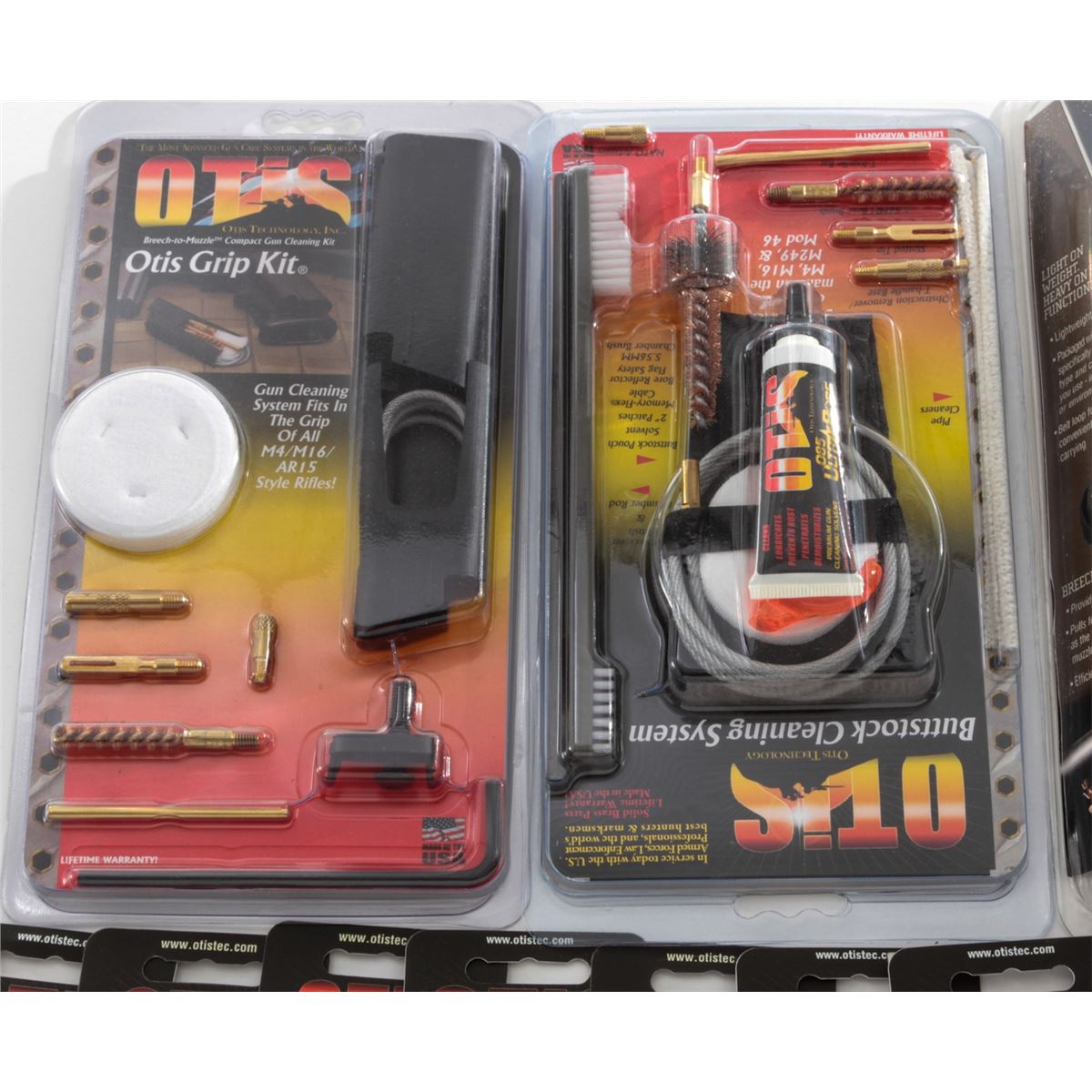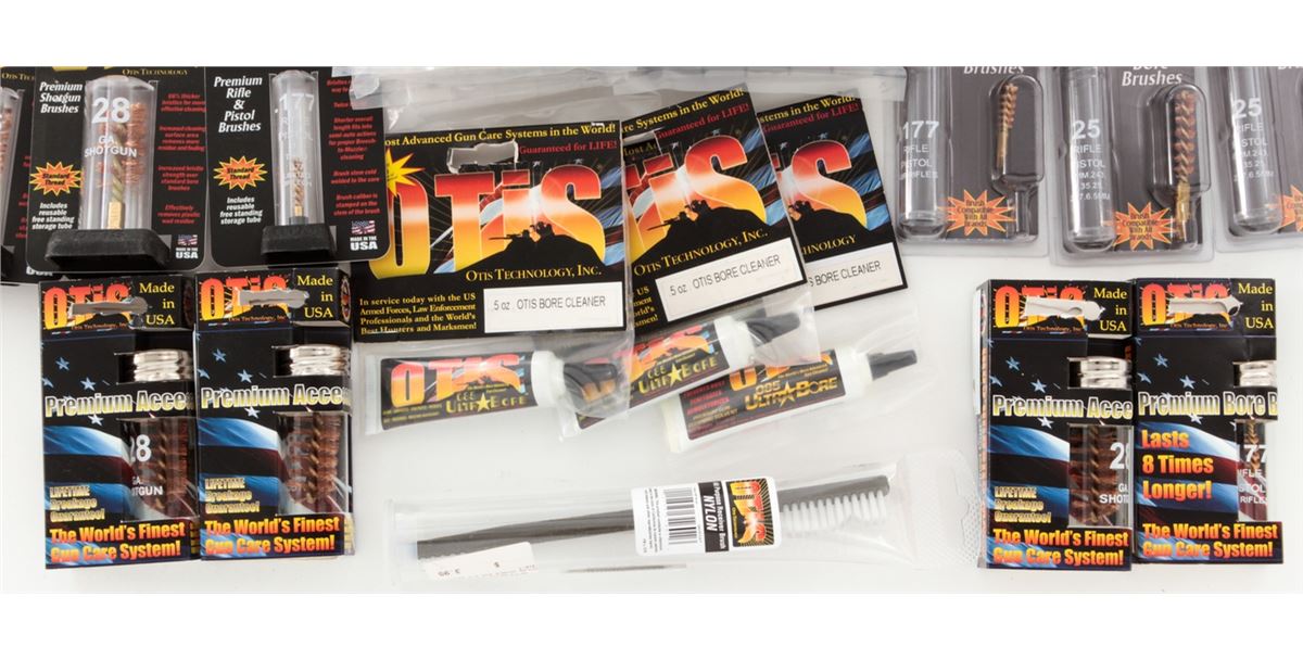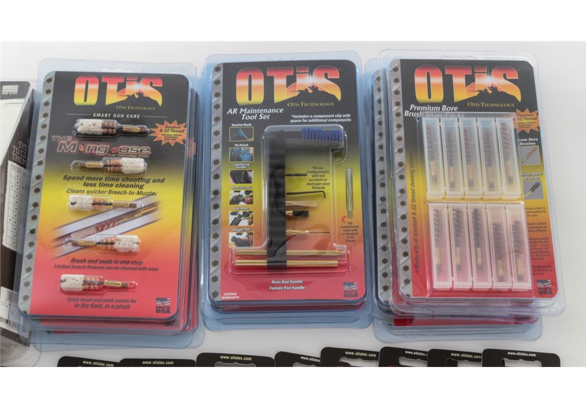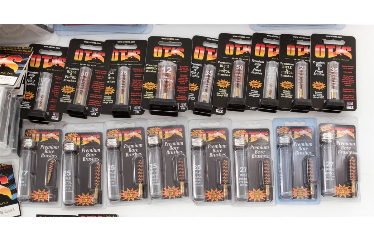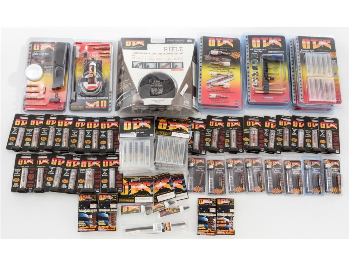 Dealer's Lot of Otis Cleaning Supplies, including Rifle Breech-to-Muzzle Gun Cleaning System for .17 cal. to .45 cal.; AR Maintenance Tool Sets; Mongoose Brush Sets; Premium Bore Brush Snap-Packs;Otis Grip Kits; Bulk Pack Tactical Nylon Replacement Brushes; Buttstock Cleaning Kit; various shotgun and rifle brushes, etc. Over 50 pieces, all brand new in original packaging. Retails @ over $250/lot. Est.: $100-$200/lot. (Field Time)