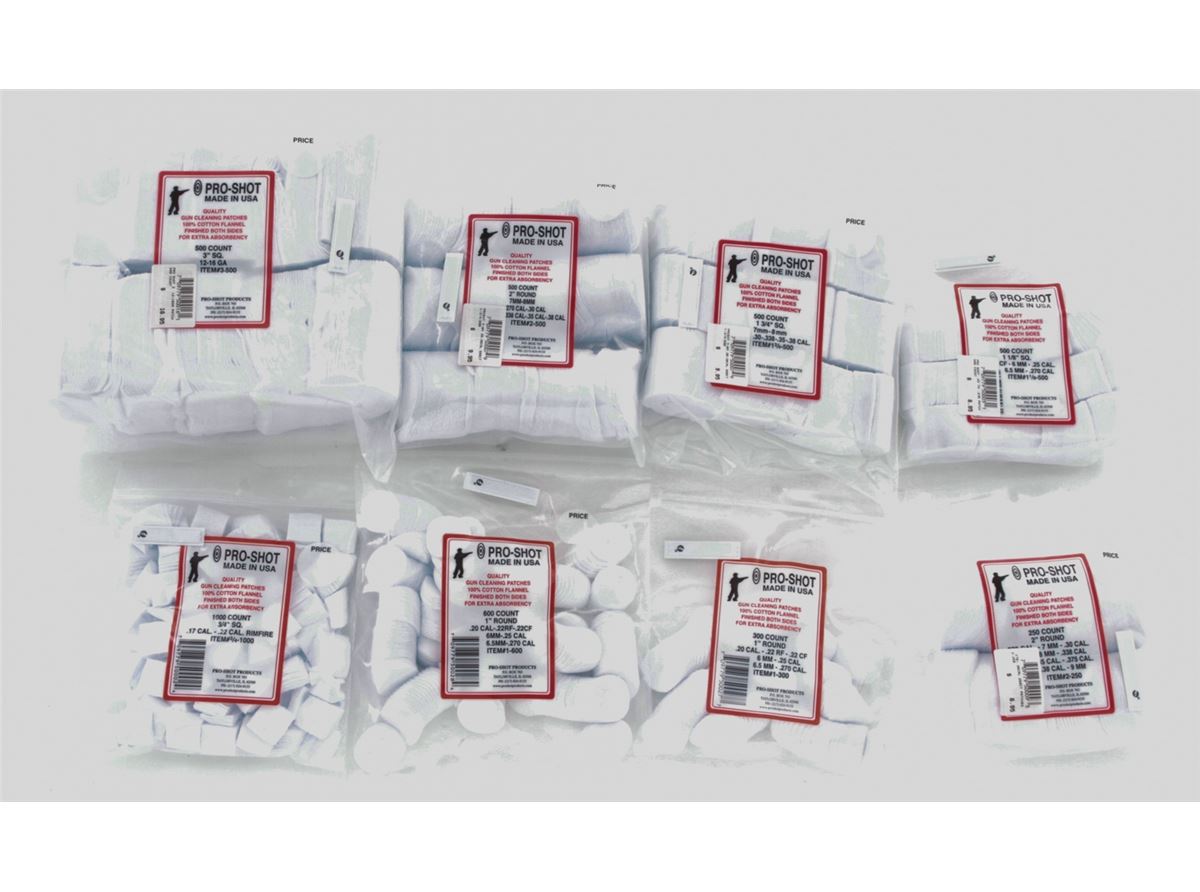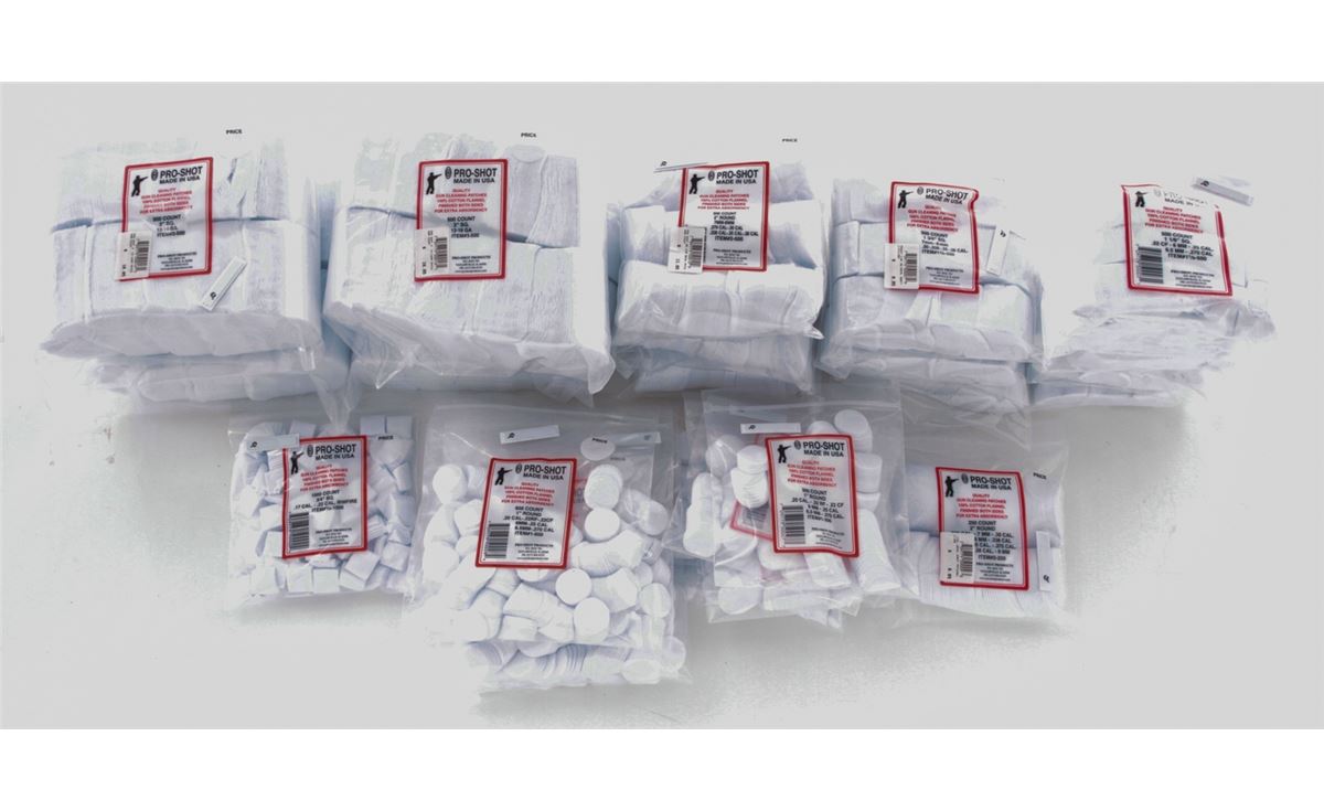Dealer's Lot of over 5000 Pro-Shot Gun Cleaning Patches, including 2'' round, 3'' square, 1-3/4'' square, 1'' round, etc., for various calibers. All brand new in original packaging. Est.: $100-$200/lot. (Field Time)