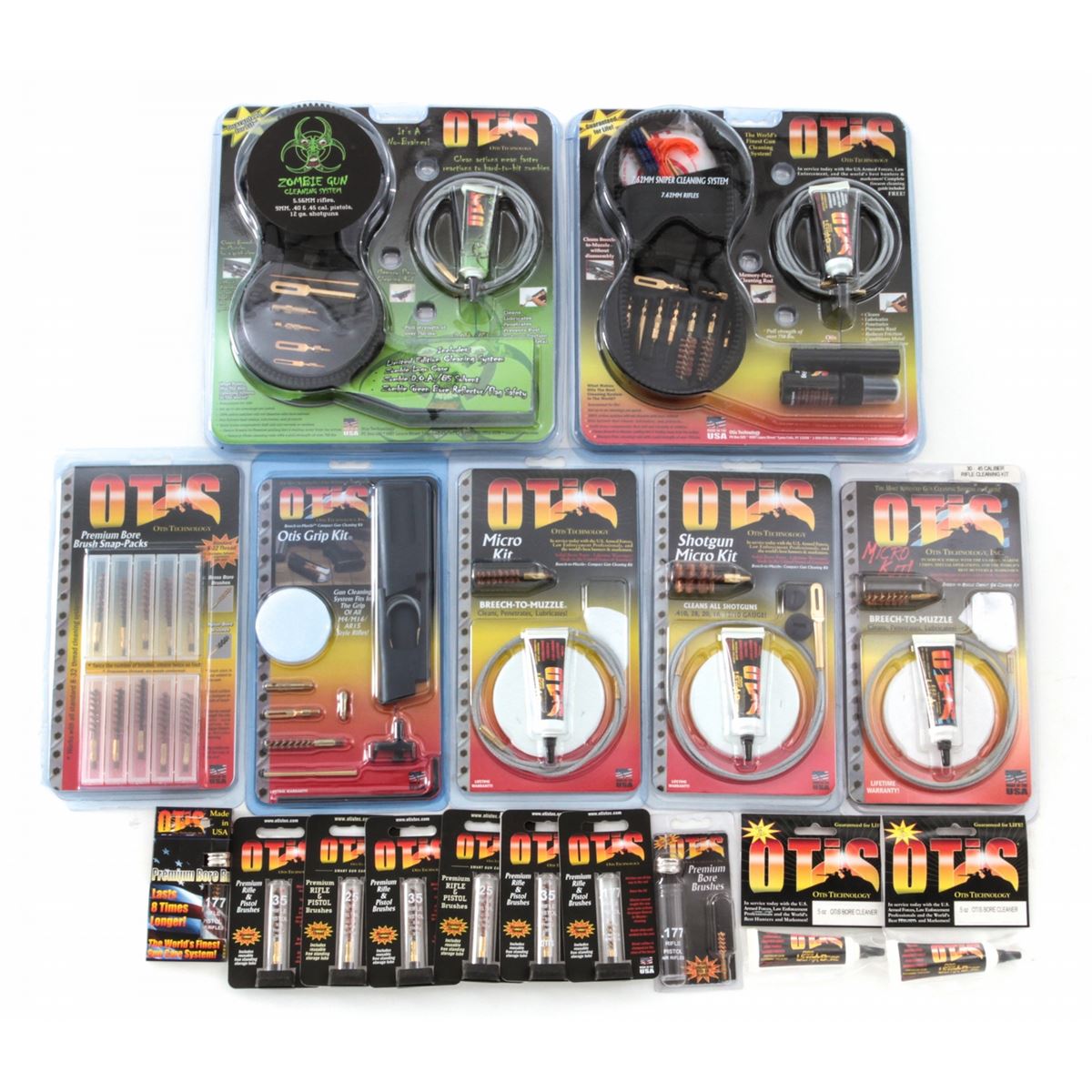 Large Lot of Otis Cleaning Accessories, including Zombie Gun Cleaning Kit, Premium Bore Brush Snap-Packs, Grip Cleaning Kits, Micro Kits for Breech-to-Muzzle and Shotgun, 7.62mm Sniper Cleaning System, etc. Approx. twenty (20) kits and brushes, all brand new in their original packaging. Est.: $200-$300/lot. (Field Time)