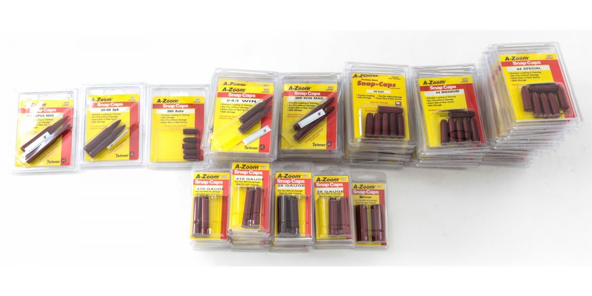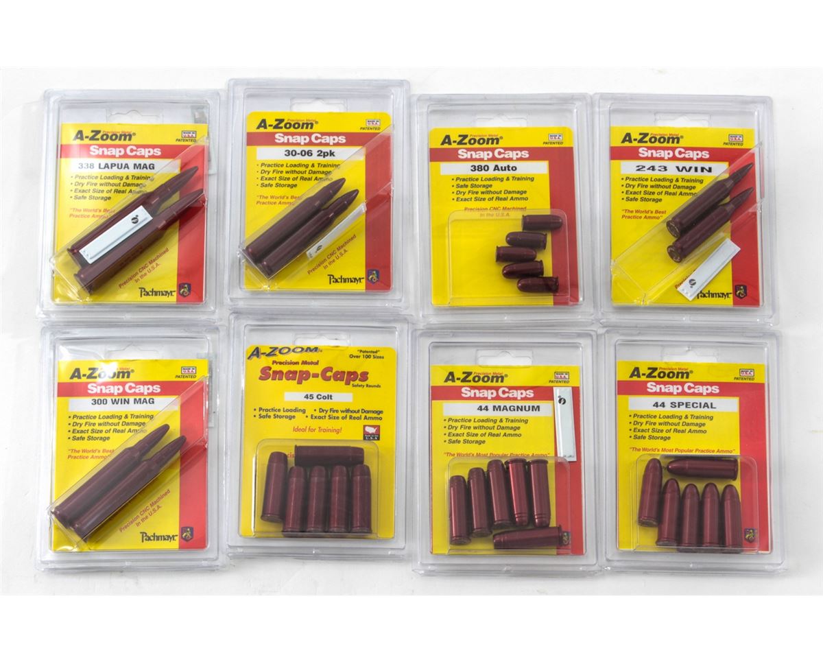 Lot of Approx. Fifty-Eight (58) A-Zoom Snap Cap Packages, for ,338 Lapua mag., .30-06 pack, ,44 Spec., .300 Win. mag., .380 Auto, .45 Colt, .410 & 28 ga., etc. All brand new in original packaging. Est.: $250-$350/lot. (Field Time)