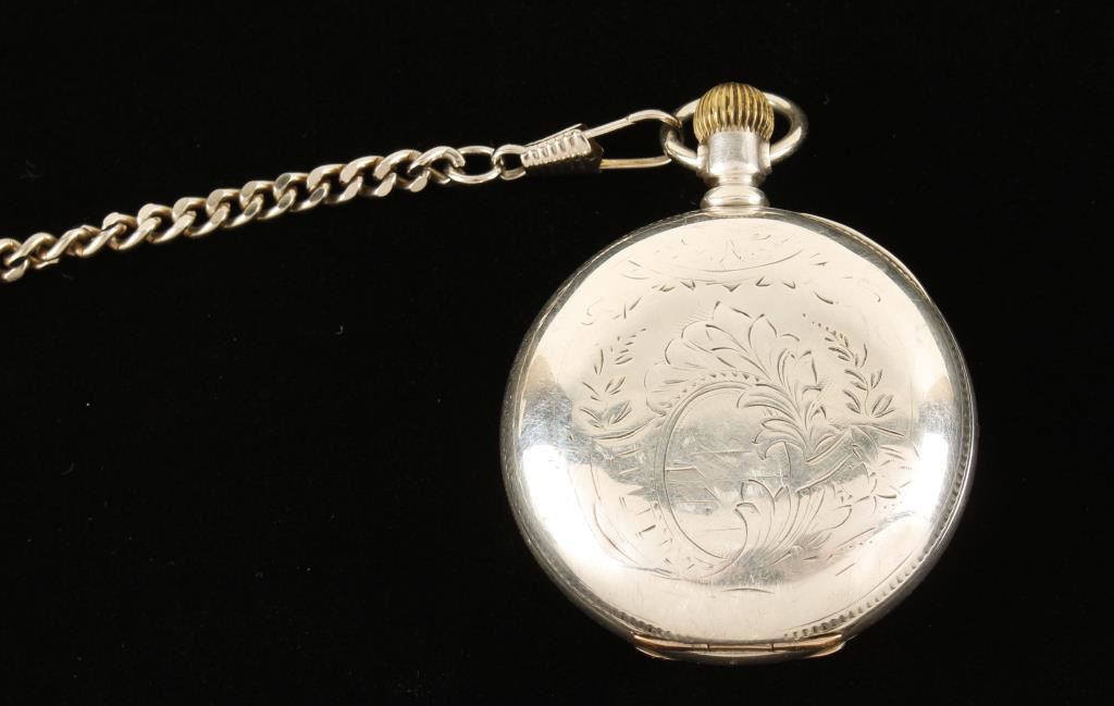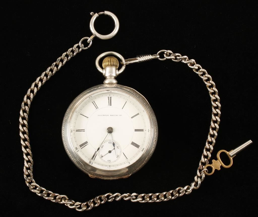 Engraved case, 1886. Model 15J with watch fob. IWC. Open faced in working condition.
