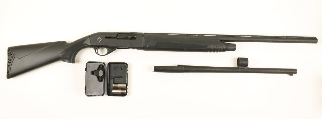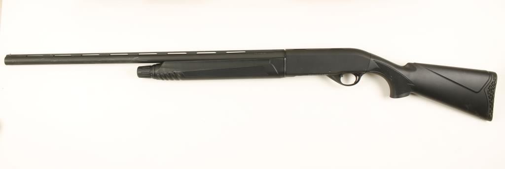Semi-automatic shotgun with black synthetic stock with matte black finish & raised vent ribbed barrel measures 28". Includes a 18.5" barrel and original box. Condition is overall very good. *Modern Firearm*