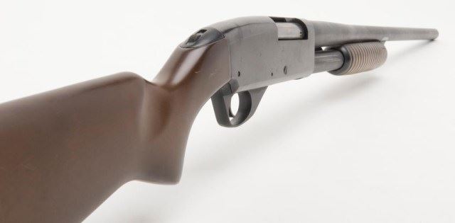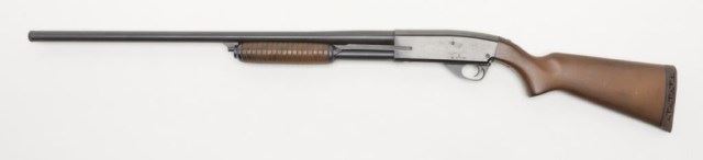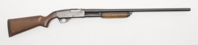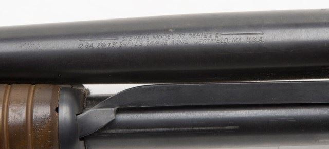 Stevens Model 67 Series E pump action shotgun, 12 gauge, 28-1/2” barrel, black finish, wood stocks, #E 425765 in overall very good to near fine condition showing the majority of its original finish with some scattered minor blemishes, fine bore, crisp action and markings, very good to fine wood. *C&R Firearm*