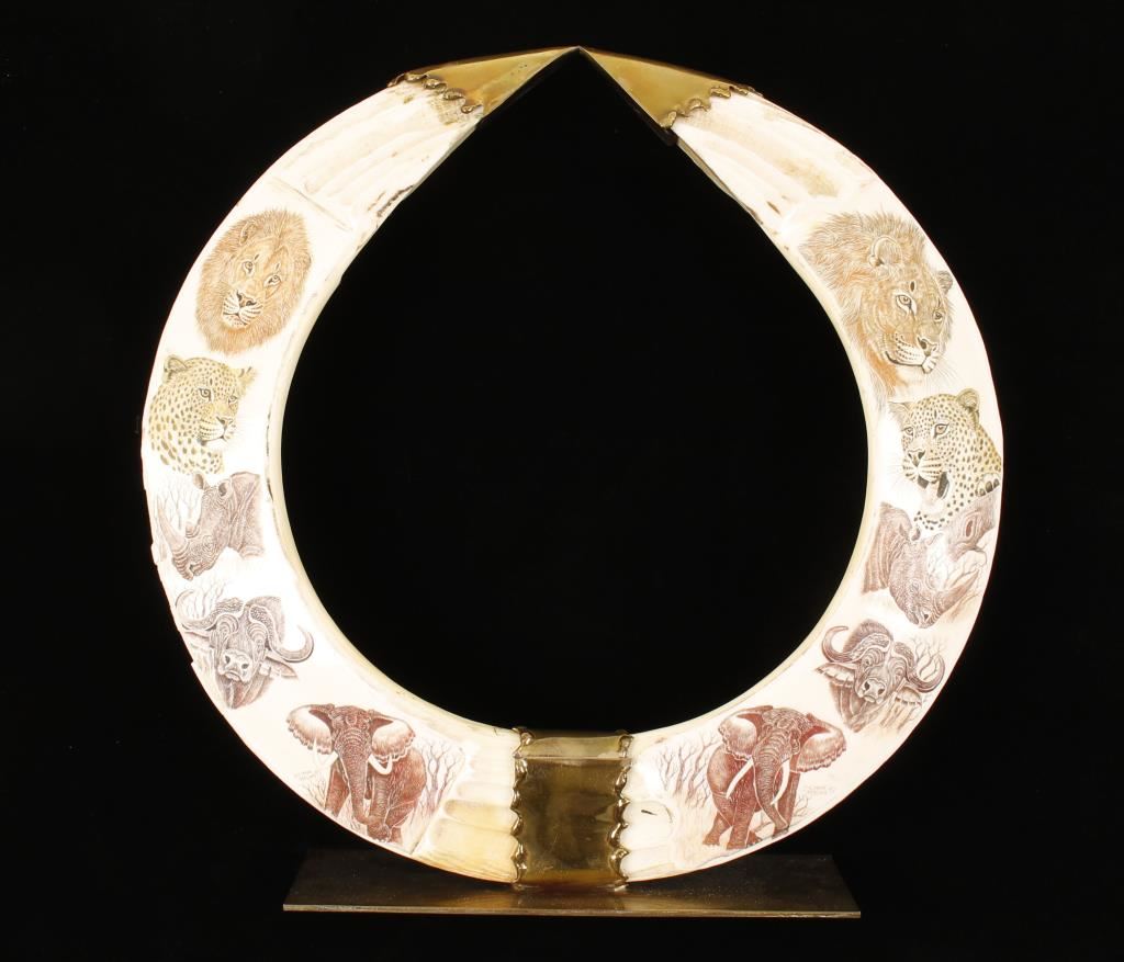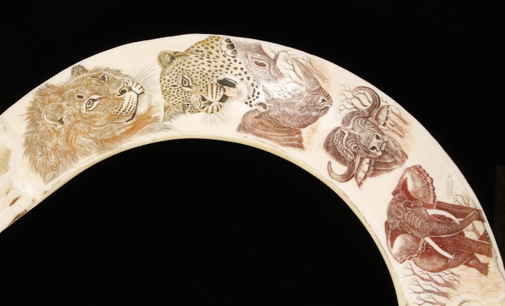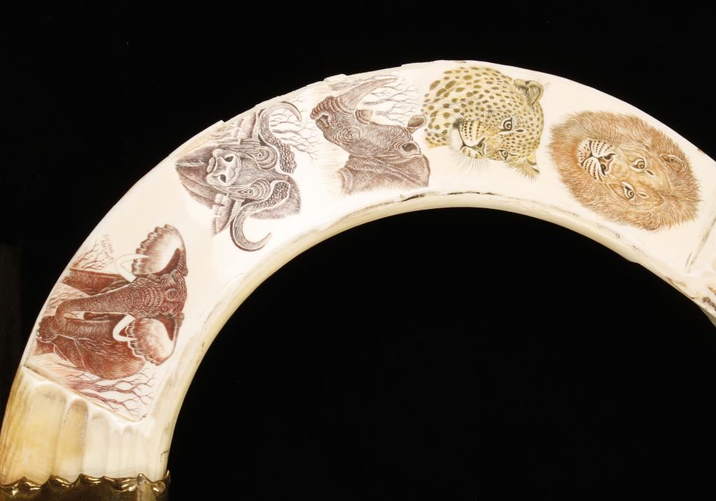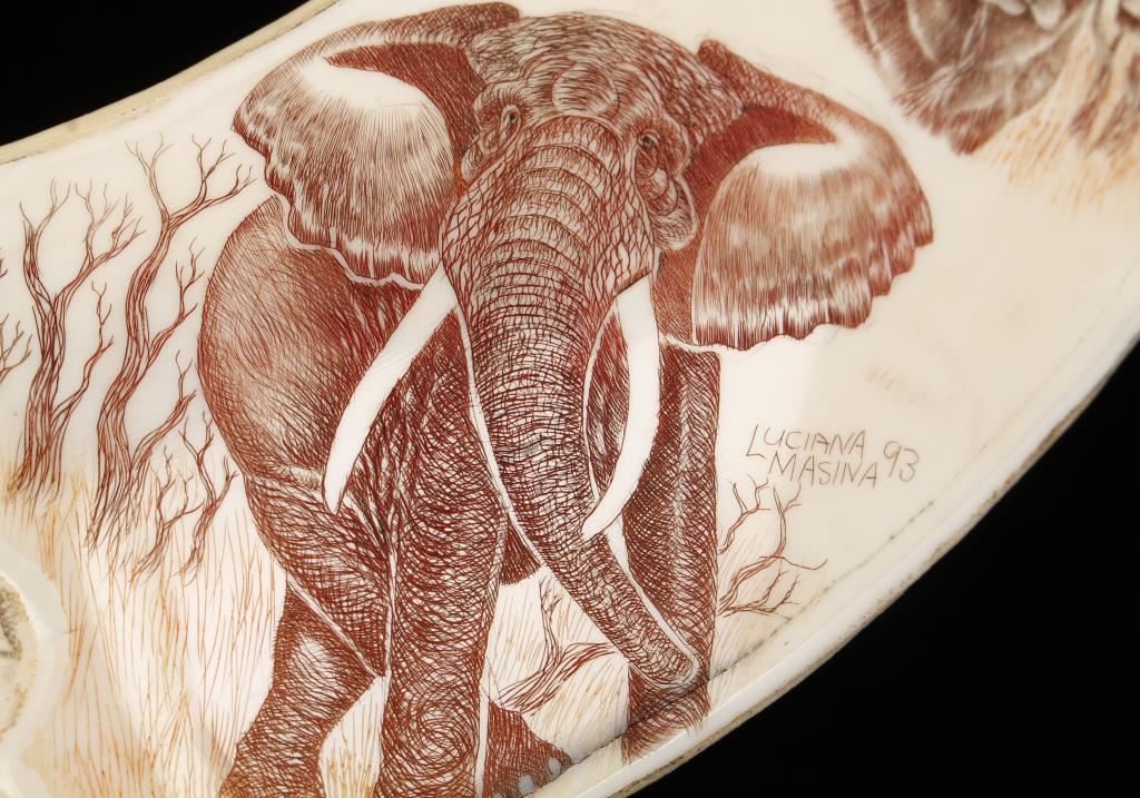 Lot 198 Scrimshawed Hippo Teeth by Luciana Masina