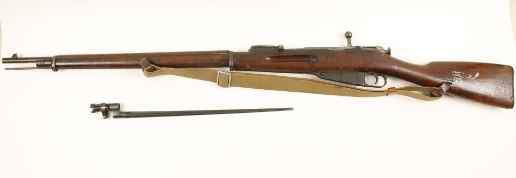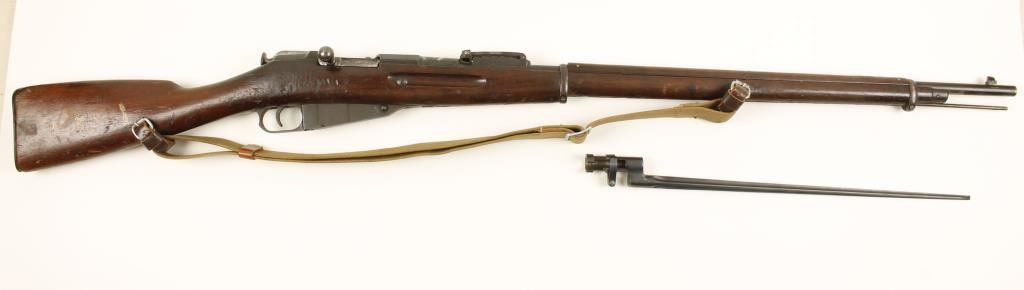 American made for White Russians. Military blued bolt-action rifle with a 32" barrel. Dated 1917. Bluing is good with some surface rust staining. Buttplate numbers match serial number but bolt number does not. Stock has all kinds of damage and painted oriental characters on the side of the buttstock. Includes a web sling and cruciform bayonet. Bore is shiny with sharp rifling. Action works well. Condition is fair to good. *Modern Firearm*