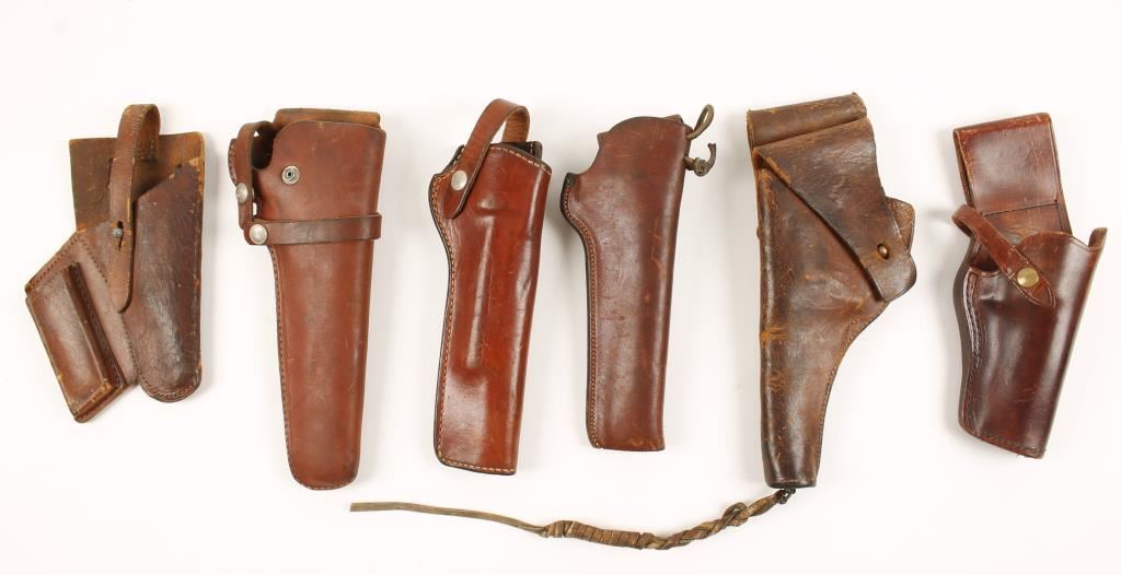 Lot 315 Lot of 6 Holsters and a Leather Rifle Scabbard.