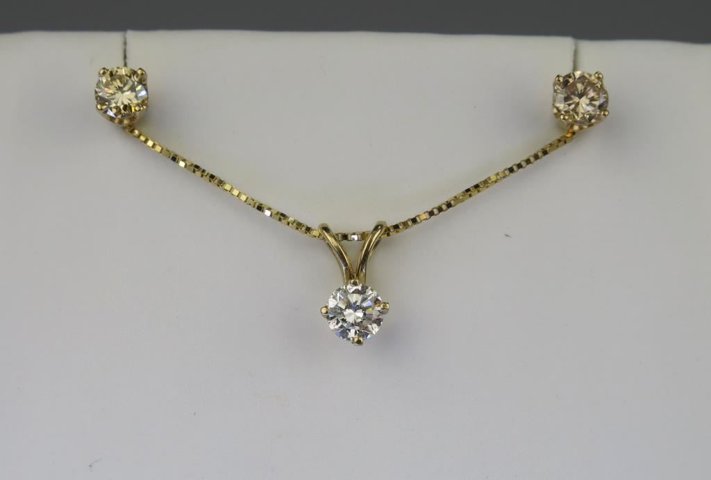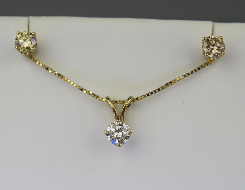 Lot 341 Classic Diamond Pendant & Diamond Stud Earrings