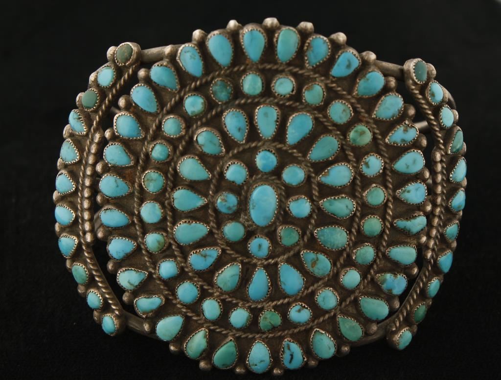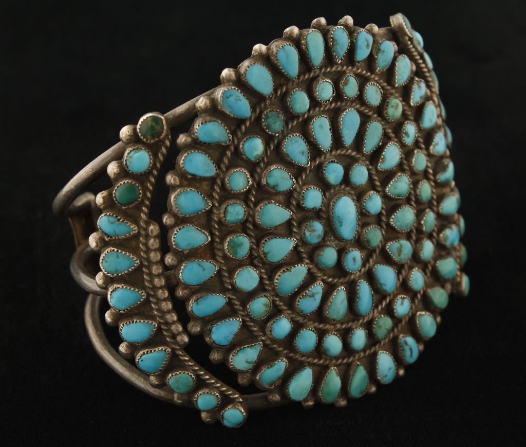 Lot 344 Traditional Old Pawn Turquoise Cluster Bracelet