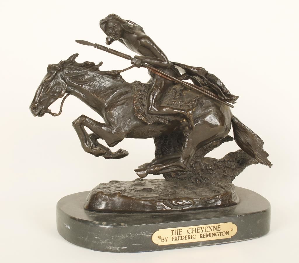 entitled "The Cheyenne" on marble base measures 9"X12", quality restrike.