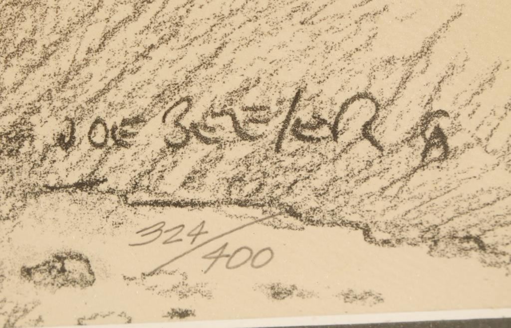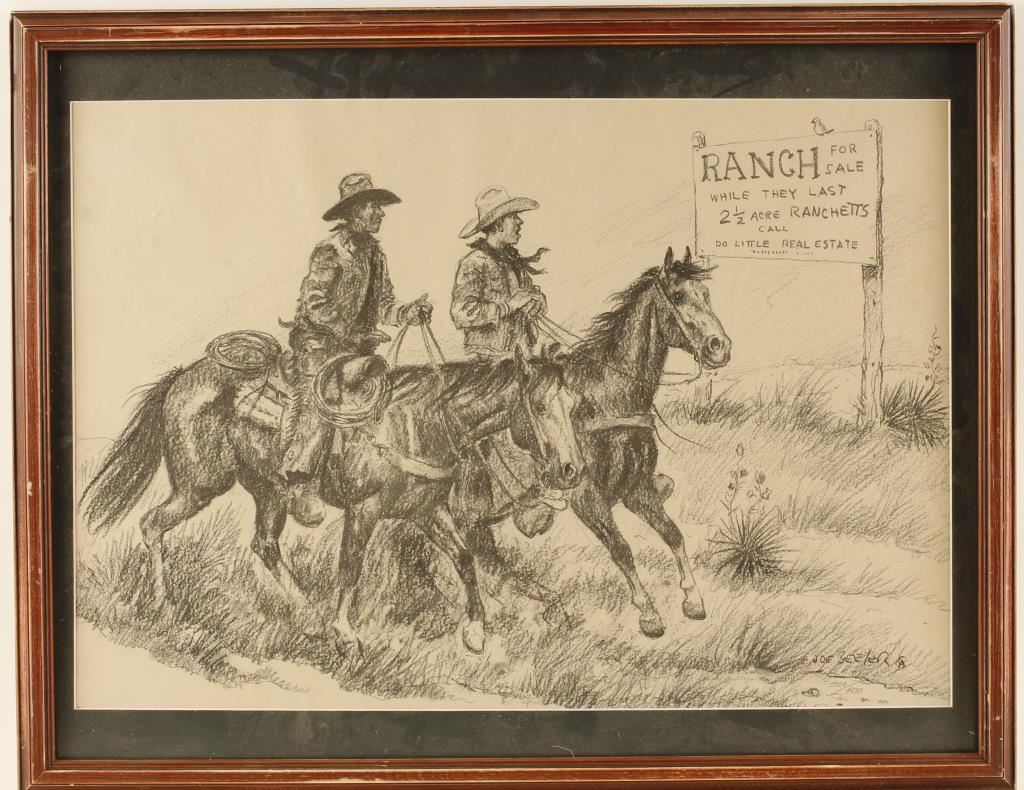 by Noted Cowboy Artist Joe Beeler. #324/400. Depicting cowboys on horseback done in a pencil style. Image size 20"x14".