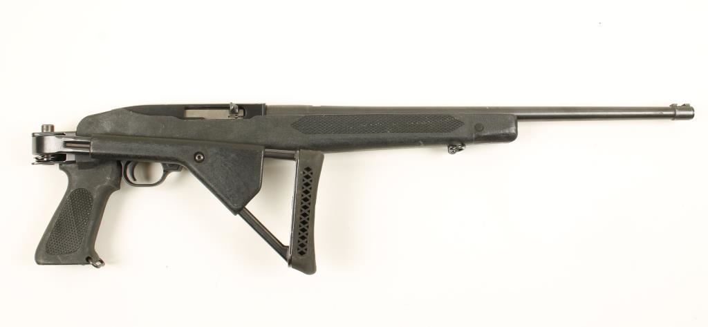 Blued semi-automatic rifle with an 18" barrel, no magazine and a folding Choate "Black Warrior" stock. Metal finish has many scratches. No sights are installed. There is a baggie with extra pins, front and rear sights and scope mount blanking screws. Stock condition is good. Bore is mirror bright. Action works well. Condition is good. *Modern Firearm*