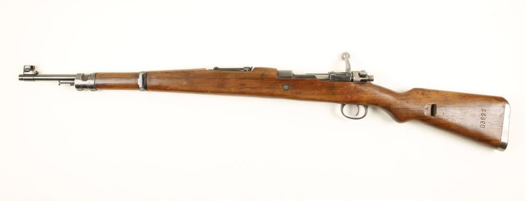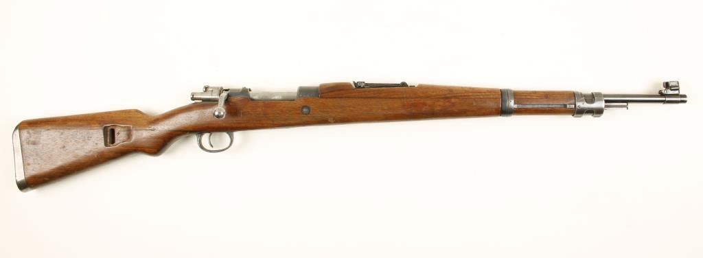 Blued German military bolt-action rifle with a 23-1/2" barrel. Import marked. Serial numbers don't match on bolt. Bluing has edge wear, fading and scratches. Floor plate is a late stamped item. Wood has dings, dents, scratches and gouges. Bore is shiny with good rifling. Action is good. Condition is very good. *Modern Firearm*