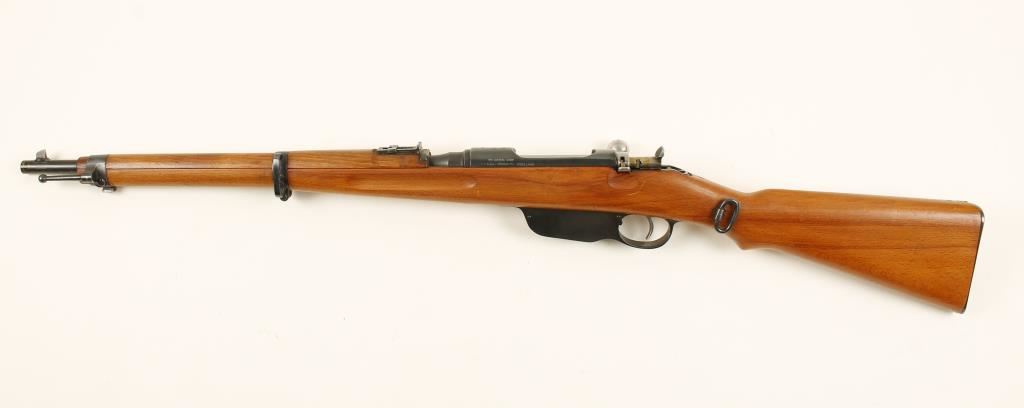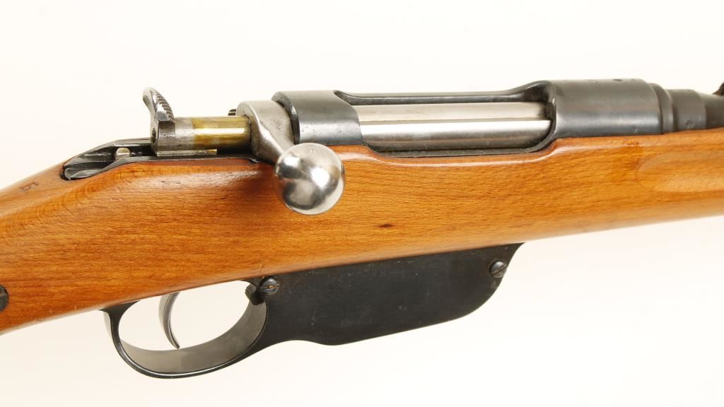 Austrian military blued bolt-action straight-pull rifle with a 19-1/2" barrel. Import marked. Metal finish is good with light edge wear. Wood has few dings and scratches with the serial number stamped in it and a few tiny round cartouches. Bore is frosty with good rifling. Action is fine. Condition is good. *Modern Firearm*