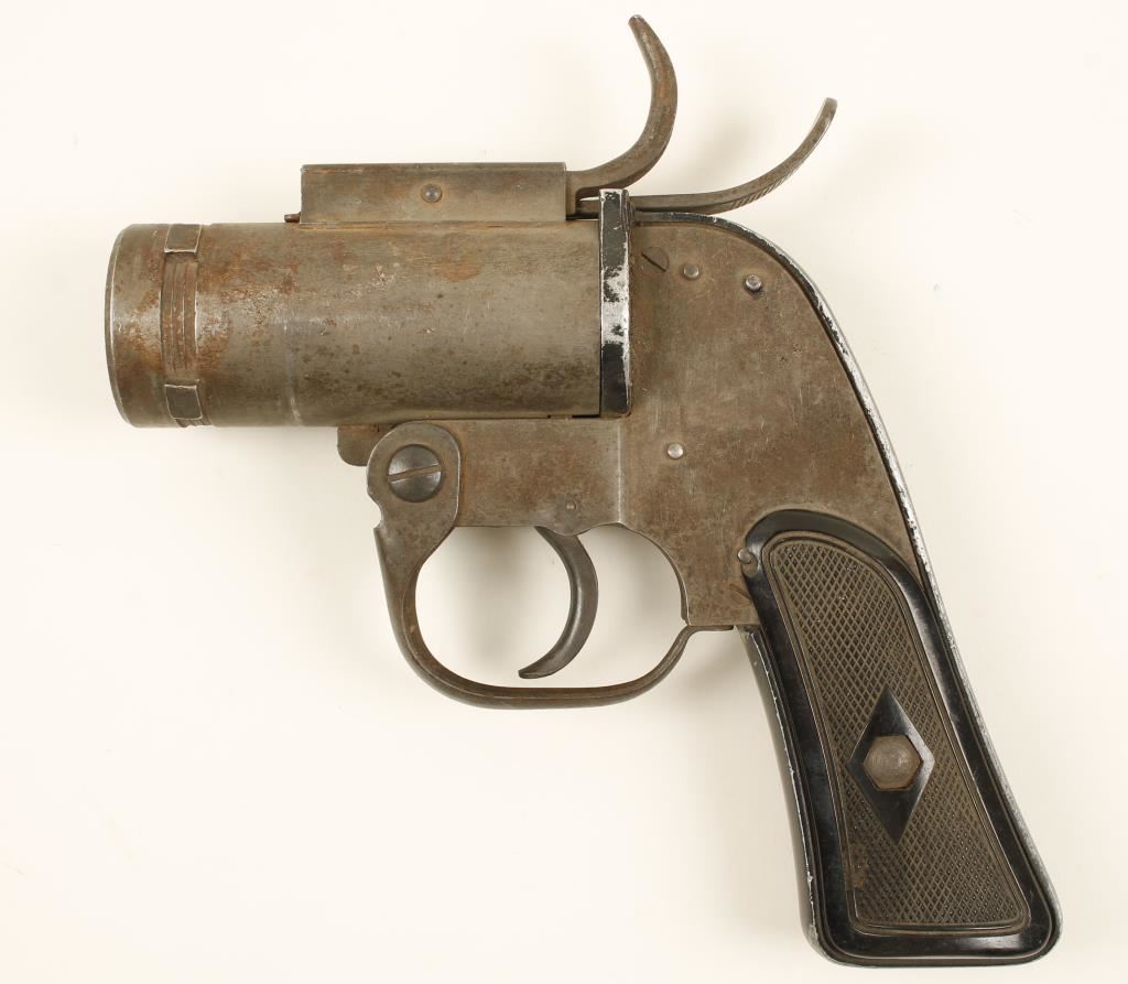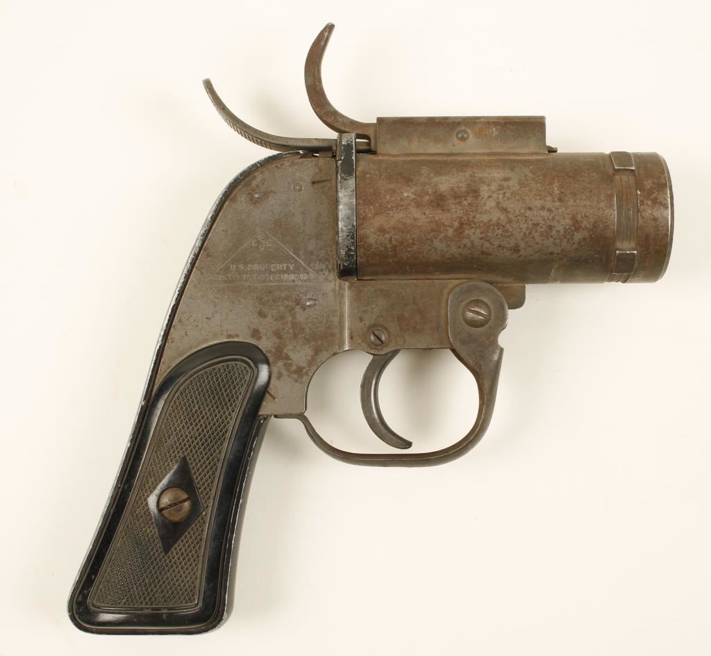 Pistol Pyrotechnic M-8 with black plastic grips. Appears to be in working condition.